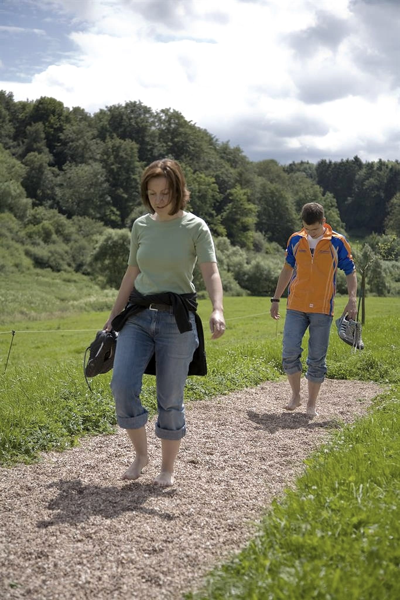 Der Barfußpfad macht Spaß und ist zugleich gesund. Fußmassagen von sanft bis kräftig quasi im vorübergehen und eine Wiederentdeckung des Fußgefühls bei einem Spaziergang über die verschiedensten Untergründe bietet dieser Pfad. Er ist 1,5 km lang und hat 22 Stationen. Zunächst führt der Pfad über verschiedene Pflasterbeläge und Sandwege zum See. Hier beginnen, nachdem man eine kleine Abkühlung im Wasser erhalten hat, die Etappen über Meersand, Perlkies, Feinsplitt, Grobkies, Lavasand, Baumrindenschrott oder Mulch zur Bachbrücke. Hier geht es entweder durch die Kiesfurt oder über die Brücke und dann über Knüppeldamm, Trittplatten, Rasenbankette und Balancierbalken. Wer Lust hat, nimmt anschließend den Klettersteig zur Kalksteinhöhle und nach einer Wiesenetappe kommt man zurück zum See, wo wieder eine Abkühlung im Wasser angesagt ist. Mit dem Auto folgt man der Ausschilderung in Hillesheim, das Navi programmiert man auf die Straße "Am Sportpark" zum Parkplatz am Info-Pavillion. Ausführliche Informationen und Prospektmaterial erhalten Sie in der Tourist-Information Hillesheim.