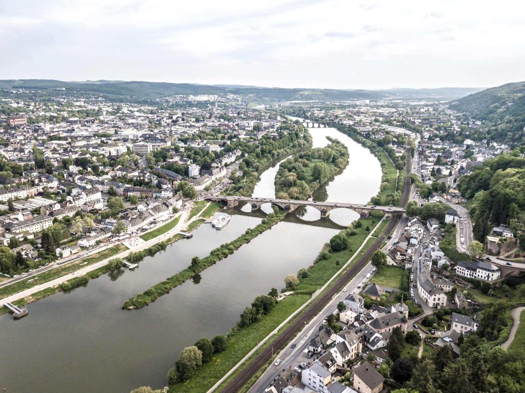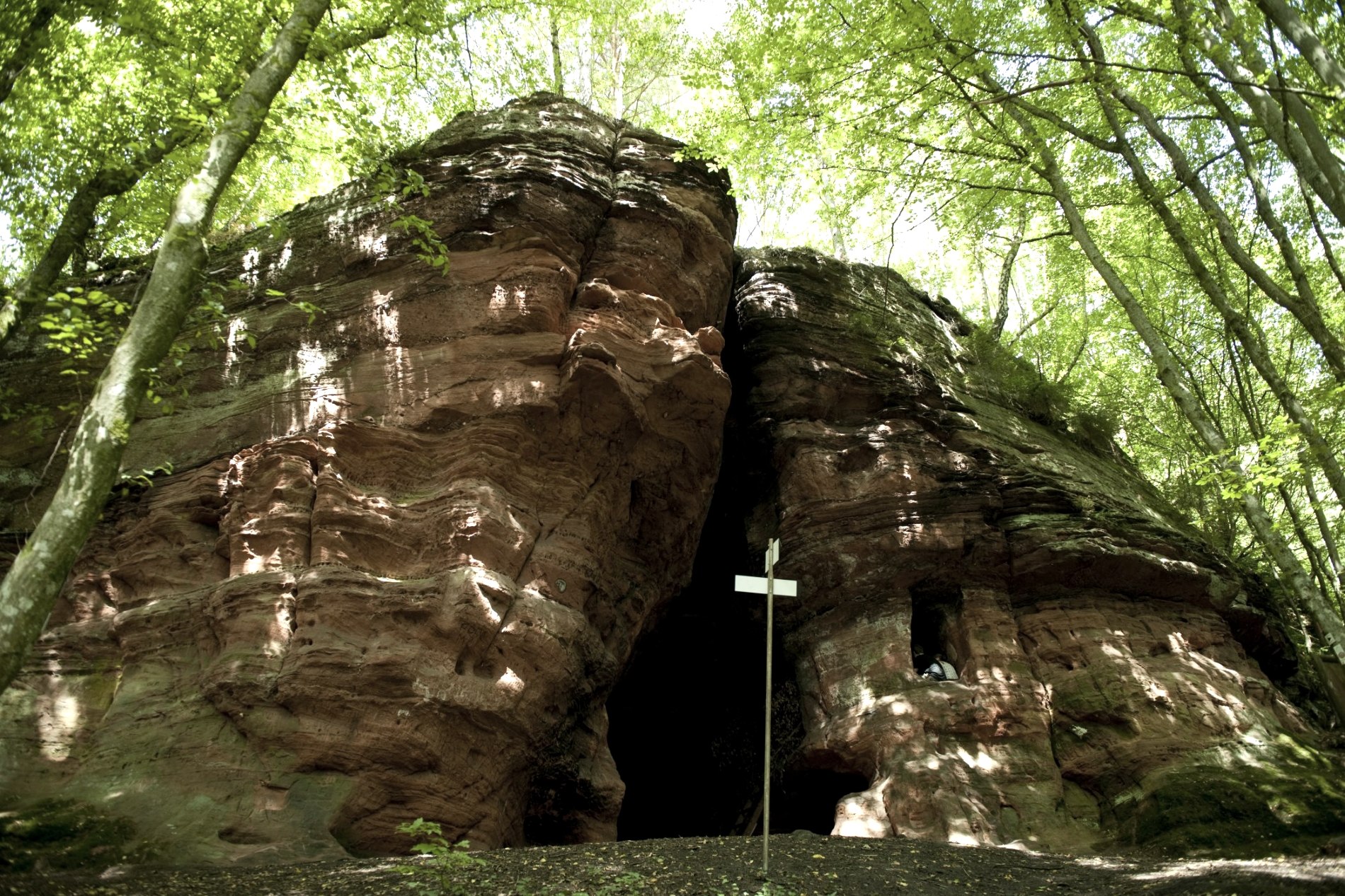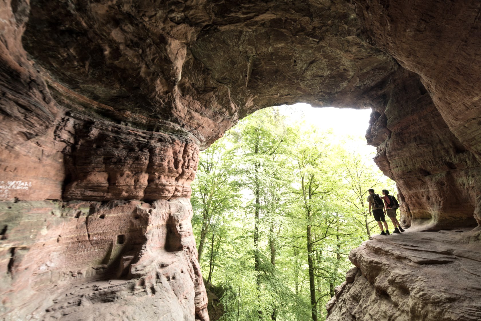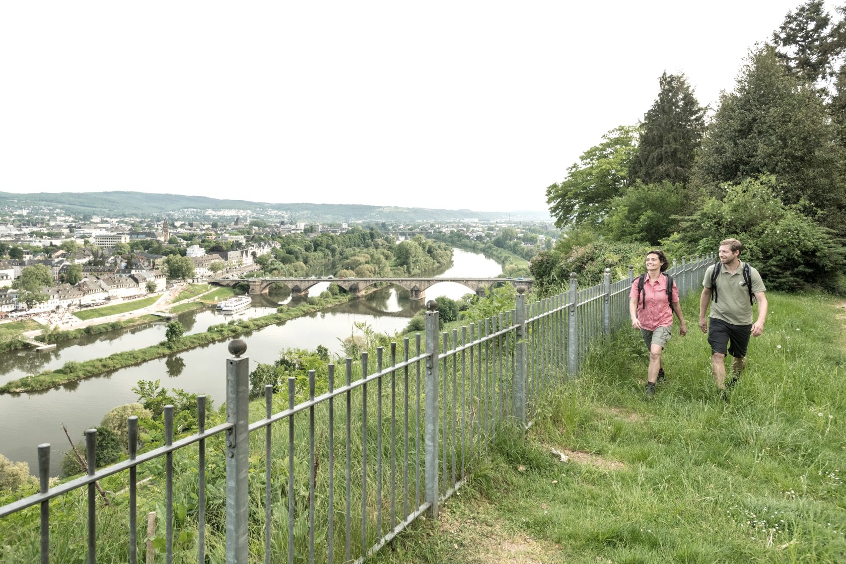 Du wanderst weiter durch die felsige Landschaft und entdeckst in einem der Felsen ein Fenster! Kann das sein? Ja. Dahinter verbringt sich im bunten Sandstein die Klausenhöhle, einst Heimat eines Eremiten. Wenn Du möchtest, kannst Du über eine Leiter in die Höhle klettern. Und dann kommt das: Ein mächtiger bunter Felsen mit eingeschlagenen Treppen. Du bist neugierig, überwindest Stufe für Stufe und oben angekommen bist Du umgeben von Fels und es eröffnet sich eine neue Perspektive auf die Umgebung. Das ist der Blick aus der Genovevahöhle, Du fühlst Dich klein und erhaben zugleich. Du nutzt die eindrucksvolle Stimmung und legst eine kleine Rast ein, dann geht es weiter. Nach der dramatischen Felslandschaft folgt ein entspannter Teil durch das Biewertal. Doch wo ein Tal ist, geht es irgendwann wieder bergauf - und es lohnt sich. Ein schmaler Felsenpfad führt Dich oberhalb der Mosel durch fast mediterranes Gelände. Warmer Kiefernduft steigt Dir in die Nase und Du ahnst es schon, Dein Ziel Trier ist nicht mehr weit. Die ersten monumentalen Bauwerke kannst Du schon erkennen: die Römerbrücke führt über die Mosel, die Konstantin-Basilika (einst Thronsaal des römischen Kaiser Kontanstins, heute evangelische Kirche) sticht aus dem Stadtbild heraus. Je näher Du dem Ziel kommst, desto stolzer wirst Du. Du hast die Etappe geschafft - und vielleicht sogar 313 Kilometer Eifelsteig! 15 Etappen, durch die ganze Eifel. Doch Du fühlst Dich, als hätte Deine Wander-Auszeit viel länger gedauert!