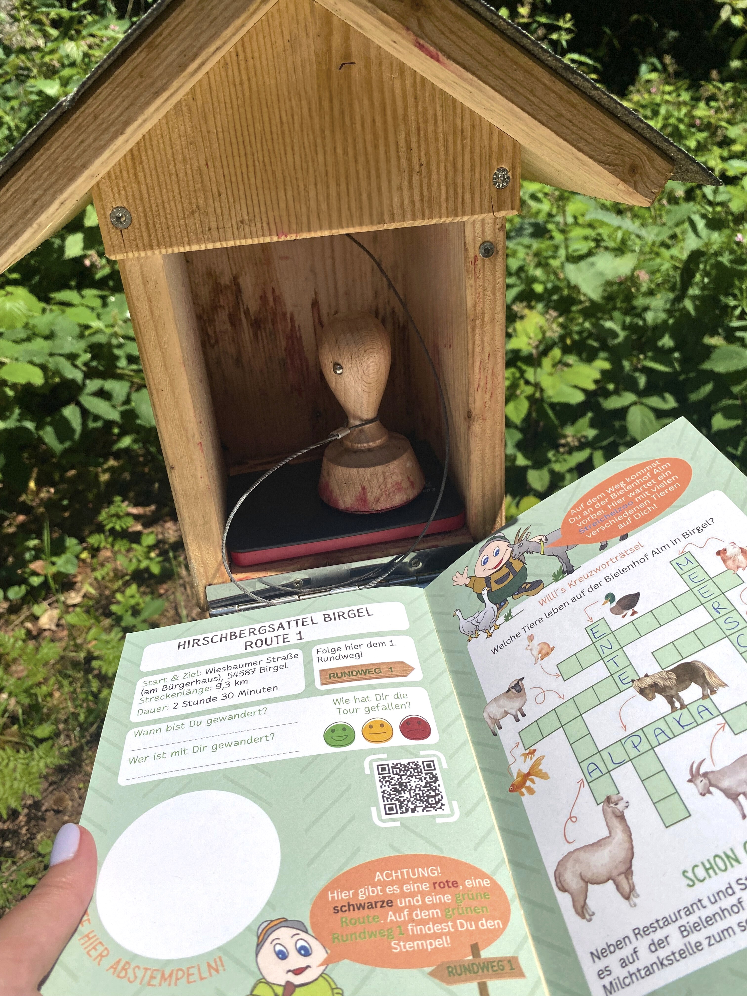Im Natur- und Erlebniswandergebiet Hirschsattel stehen Ihnen insgesamt drei unterschiedlich lange Touren zur Verfügung. Bei der mittleren Tour (grün) über 9.3 km erwandert man die Höhen rund um Birgel. An fast jeder Biegung hat man einen anderen Ausblick auf unsere schöne Eifellandschaft. Für die sportlichen Wanderer gibt es verschiedene Angebote die körperliche Fitness zu überprüfen, während der Naturliebhaber seine Kenntnisse über die einheimischen Bäume auffrischen kann.