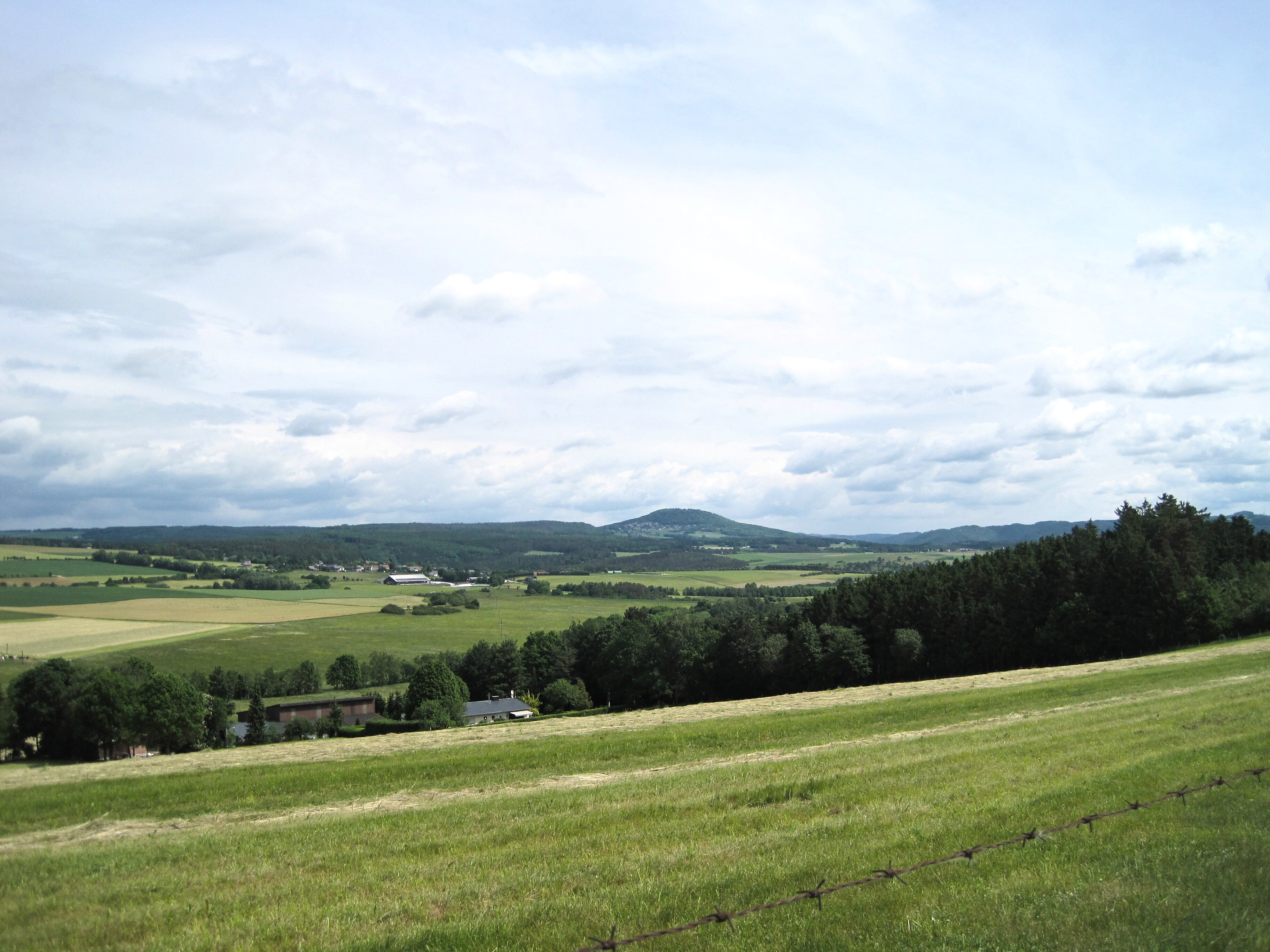 Die Wanderung verläuft überwiegend über offene Wiesen und landwirtschaftliche Felder rund um Leudersdorf. Sie bietet weite und herrliche Panoramablicke in alle Himmelsrichtungen.