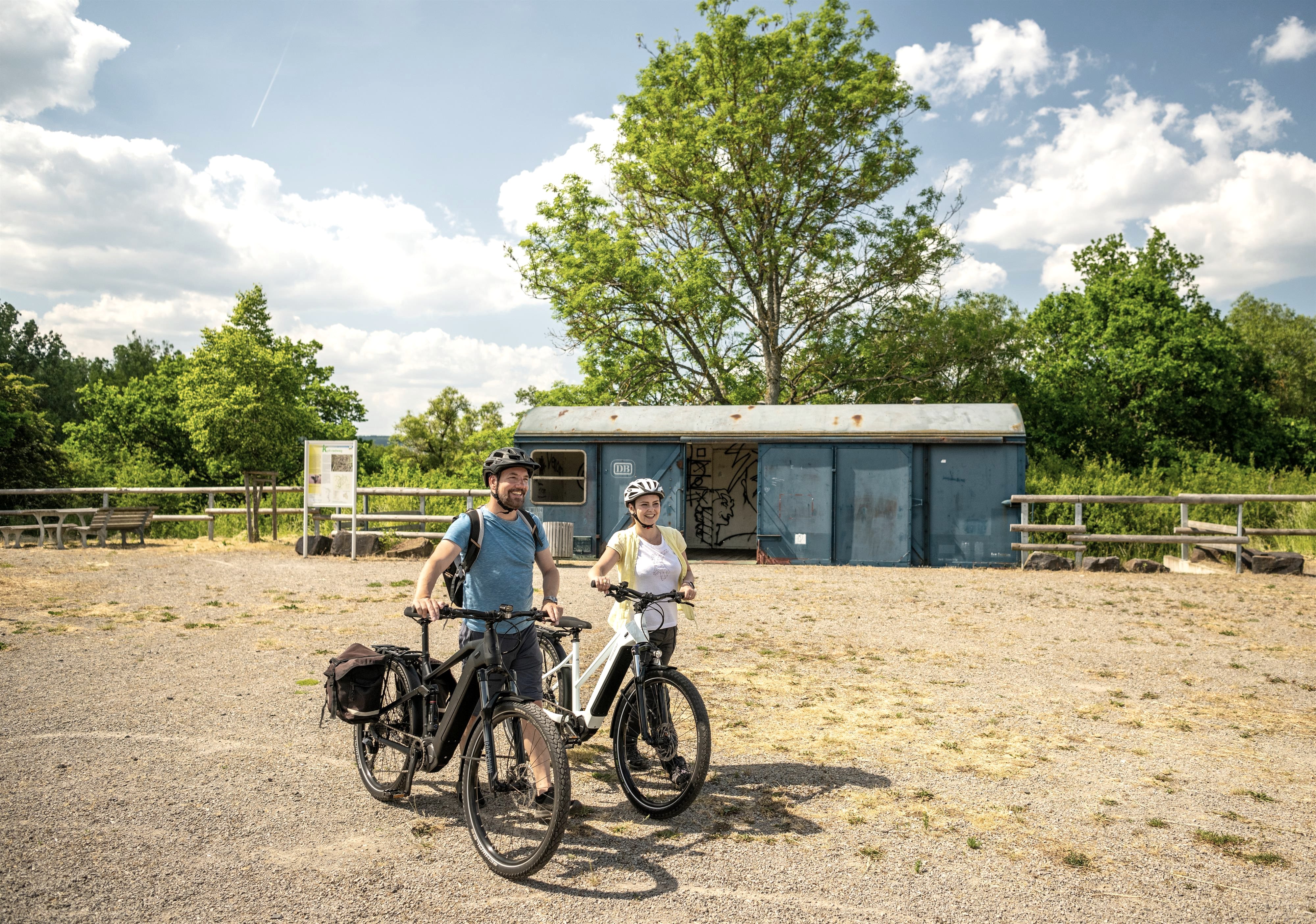 Bei Regen besteht die Möglichkeit sich in einem alten Bahnwagon unterzustellen, dieser bietet auch Tische und Bänke.