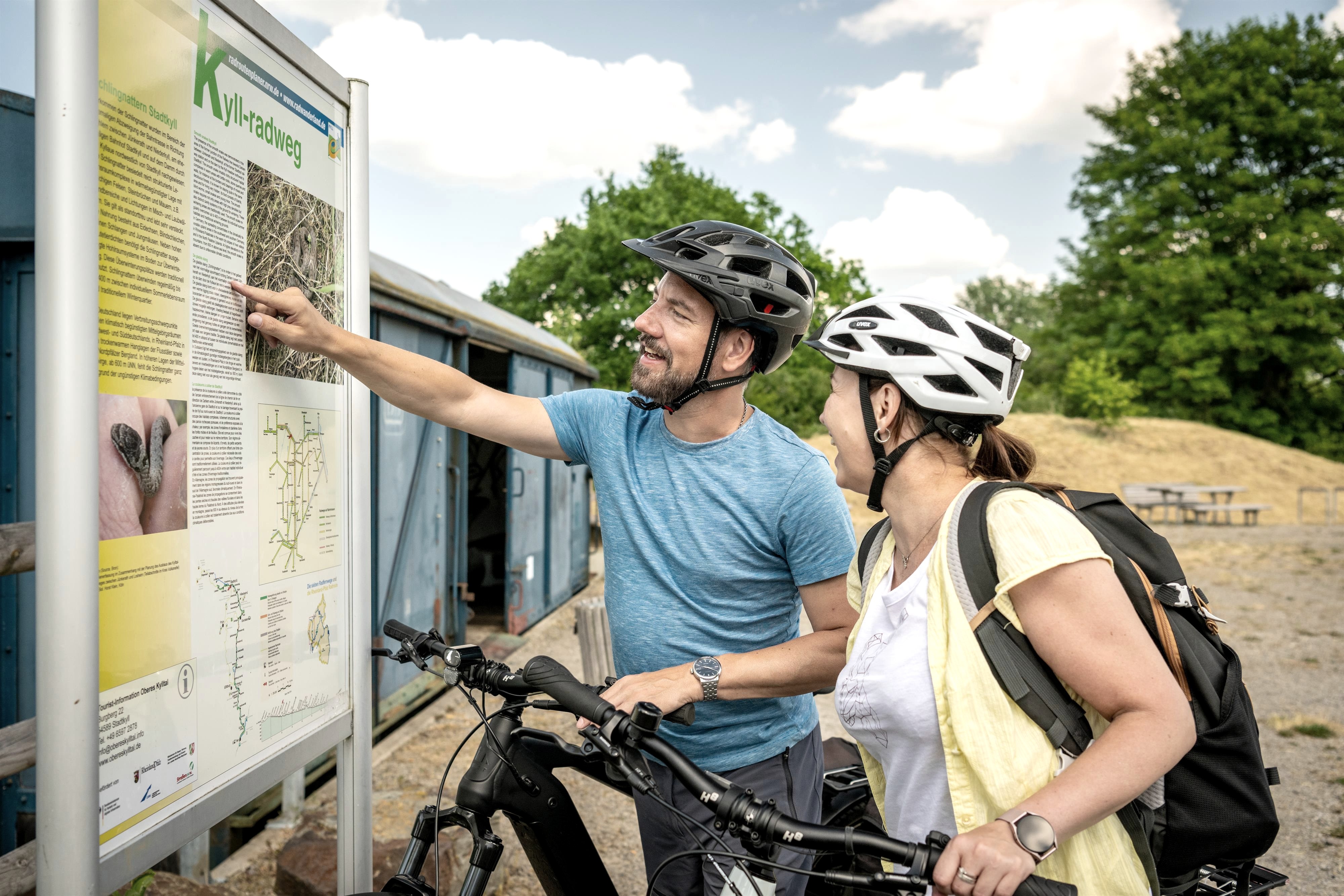Der schön gestaltete Rastplatz am Kyll-Radweg bei Stadtkyll lädt jeden Radfahrer zum Verweilen ein. Entspannt werden kann entweder auf einer der ergonomischen Bänken oder auf den diversen anderen Sitzgelegenheiten.