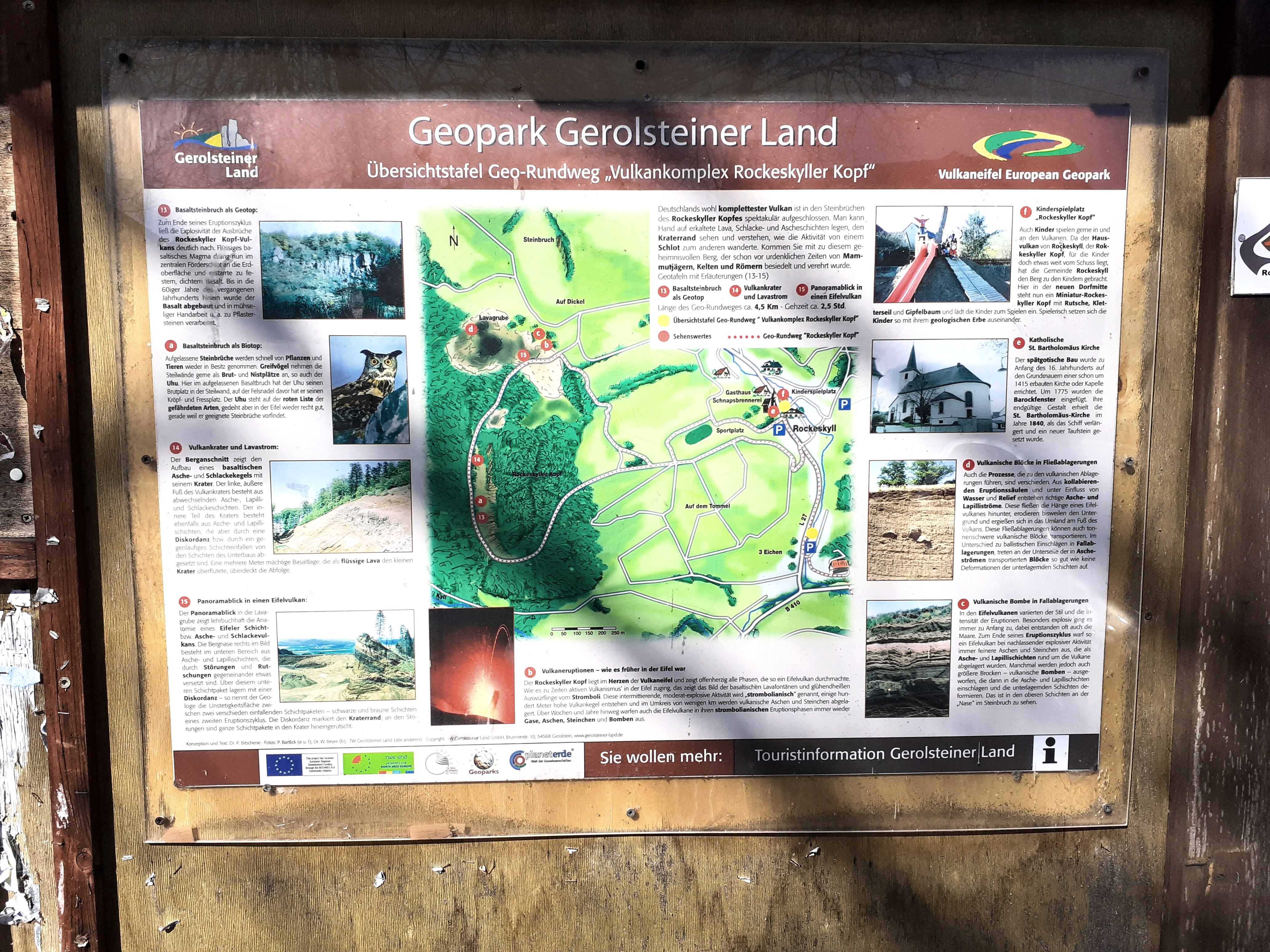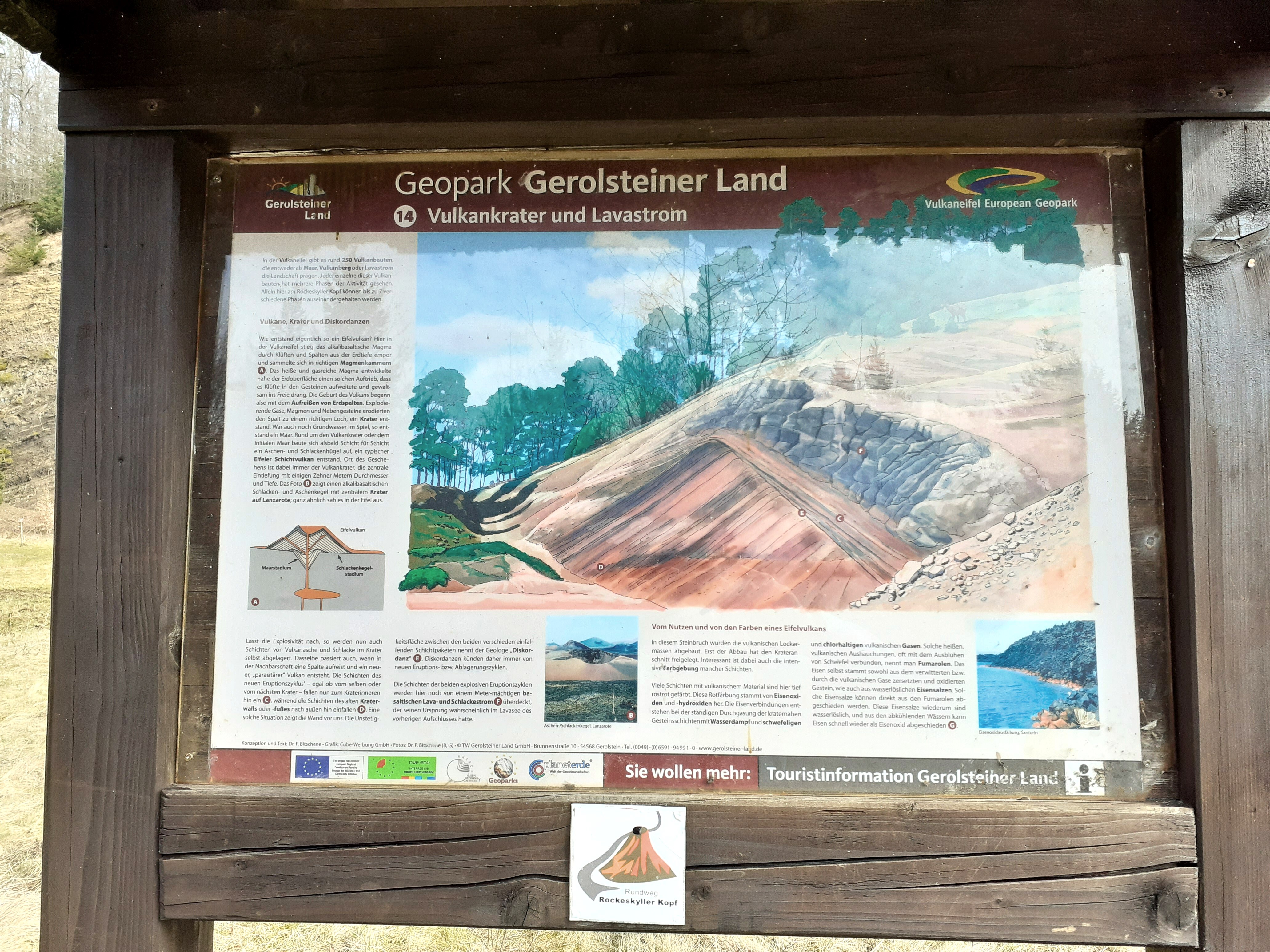 Westlich der Ortschaft Rockeskyll liegt ein Geotop besonderer Dimension und Kategorie, ein Vulkankomplex aus der Quartär-Zeit. Letztere begann vor etwa 1,8 Millionen Jahren und reicht bis heute. Wie in einem Bilderbuch sind die Vulkanbauten und vulkanischen Ablagerungen zu sehen. Man kann Hand auf erkaltete Lava und Schlacken-Aschenschichten legen, den Kraterrand sehen und verstehen, wie die Aktivität von einem Schlot zum anderen wanderte.