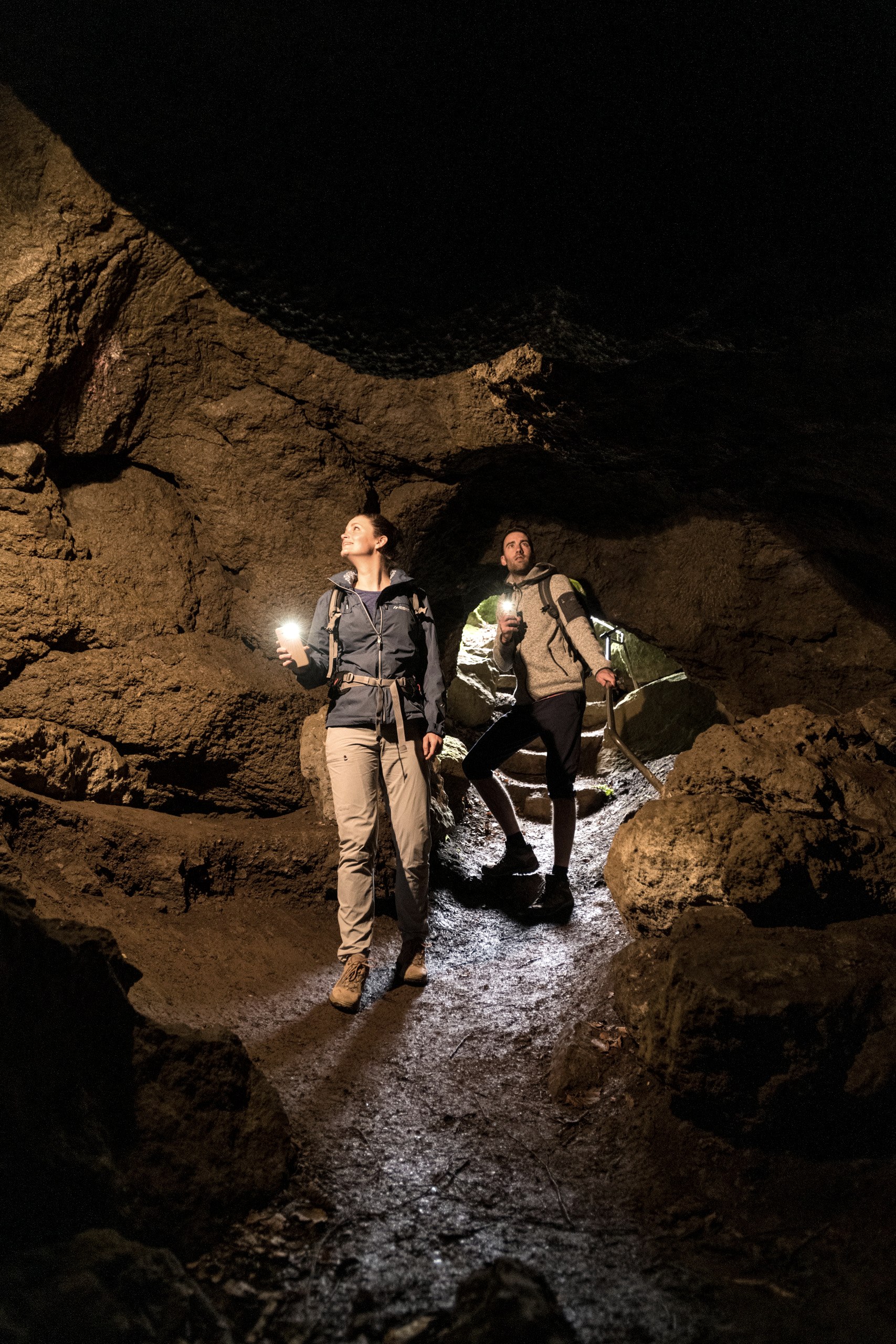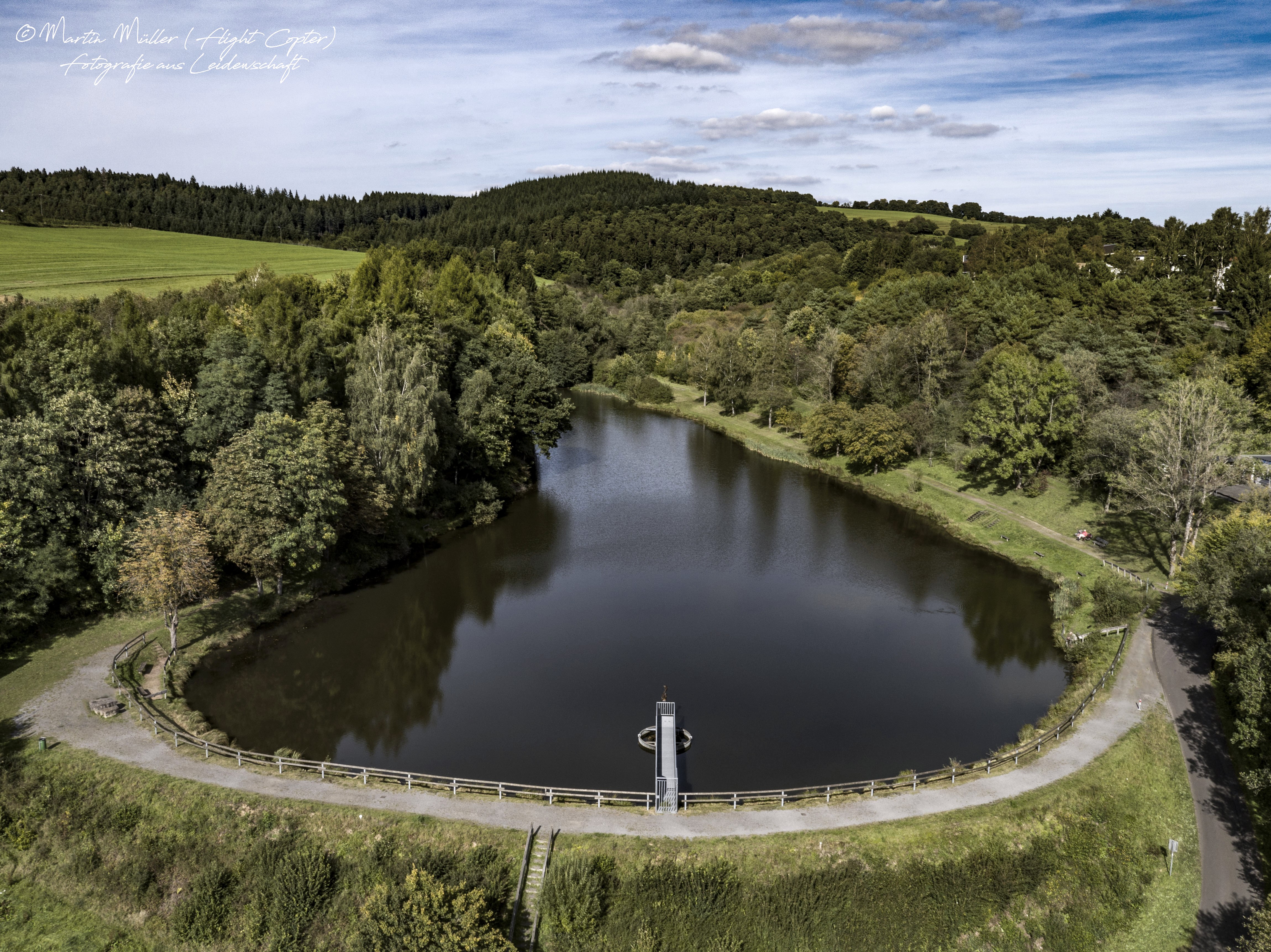 Am grünen Stadtrand von Gerolstein können Sie die Seele baumeln lassen. Start und Ziel ist am Stausee von Gerolstein, welchen wir in nördliche Richtung verlassen. Wir folgen der Wegemarkierung hinauf durch weitläufige Felder und kleine Waldparzellen, vorbei am Heimatpfad mit der gigantischen erdgeschichtlichen Uhr. Zwischen Müllenborn und Roth ragt der Vulkankegel Rother Kopf, mit einer beachtlichen Höhe von 566 m, aus der Landschaft empor. Dieser ist ein typischer basaltischer Eifel-Vulkan. Der poröse, schlackige Basalt war von der Römerzeit bis ins 19. Jahrhundert bestes Rohmaterial für die Herstellung von Mühlsteinen. In unterirdischen Galerien wurden die Mühlsteine abgebaut, noch heute "kleben" zahlreiche Mühlsteine an den Höhlenwänden. Lange wurden diese auch als "Eishöhlen" genutzt, zum Aachener Kongress 1818 lutschten die Fürsten und Bischöfe das Höhleneis von Roth! Die kühle, allergenfreie Luft in der Höhle ist eine Wohltat in heißen Sommertagen, genießen Sie das "Höhlensanatorium en miniature"! Die Mühlstein- und Eishöhlen des Rother Kopfes können ganzjährlich besucht werden. Wer eine Taschenlampe dabei hat, kann in die Höhlen eintauchen und dort eine atemberaubende Atmosphäre erleben. Wir folgen der Wegemarkierung und erreichen den Gipfel des Rother Kopfes, wo wir auf einer Höhe von 566 m eine fantastische Aussicht über das Oosbachtal genießen. Danach treten wir den Rückweg an. Talwärts folgen wir der Wegemarkierung. Vorbei am oberen Ortsrand von Müllenborn geht es dann wieder zurück zum Stausee Gerolstein, wo man am Ende der Wanderung nochmal ganz entspannt die Seele baumeln lassen kann.