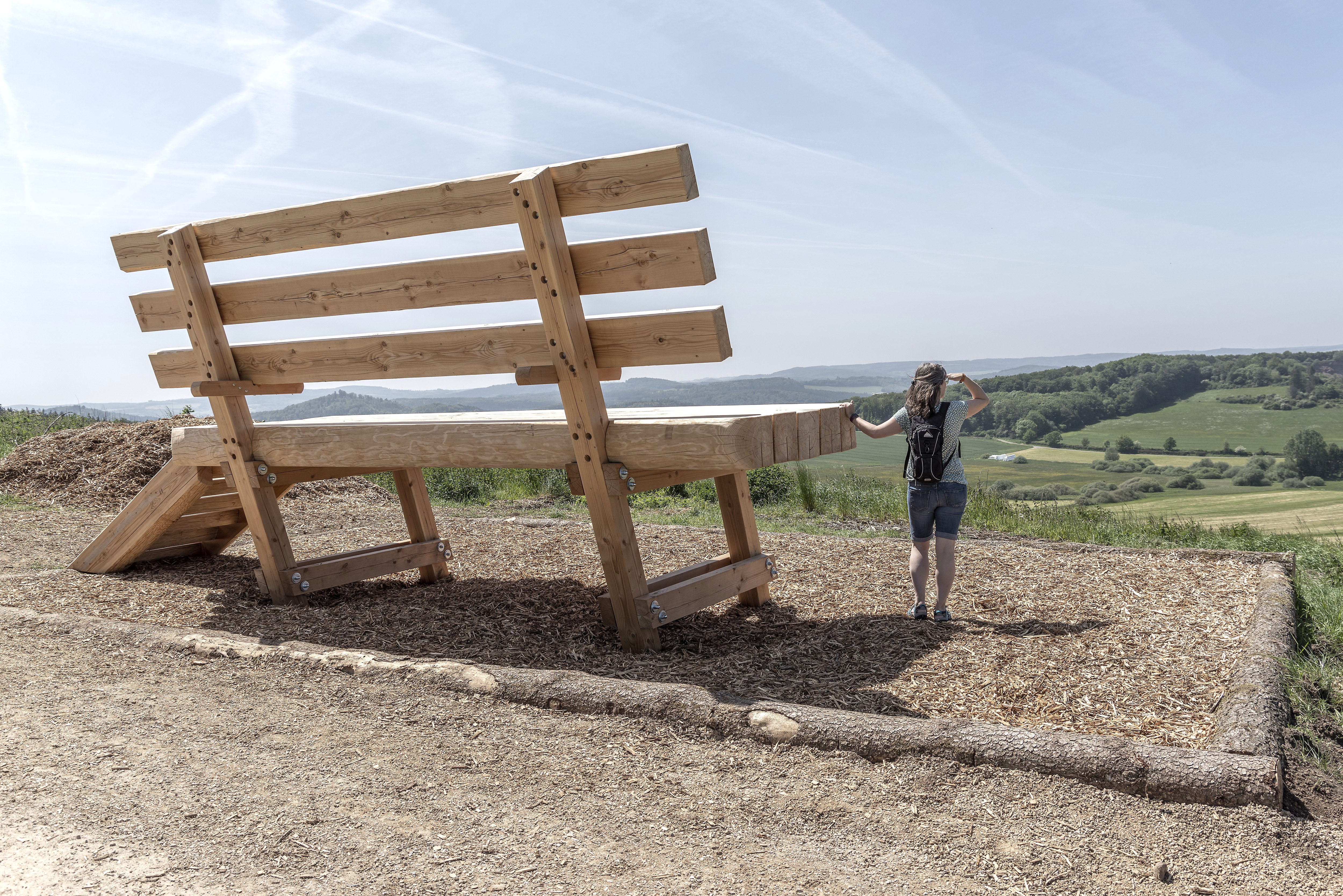 Der Rundweg bietet Einblick in unsere vulkanische Vergangenheit und Ausblick von der XXL-Bank über unsere wunderschöne Vulkaneifel in der Gegenwart.