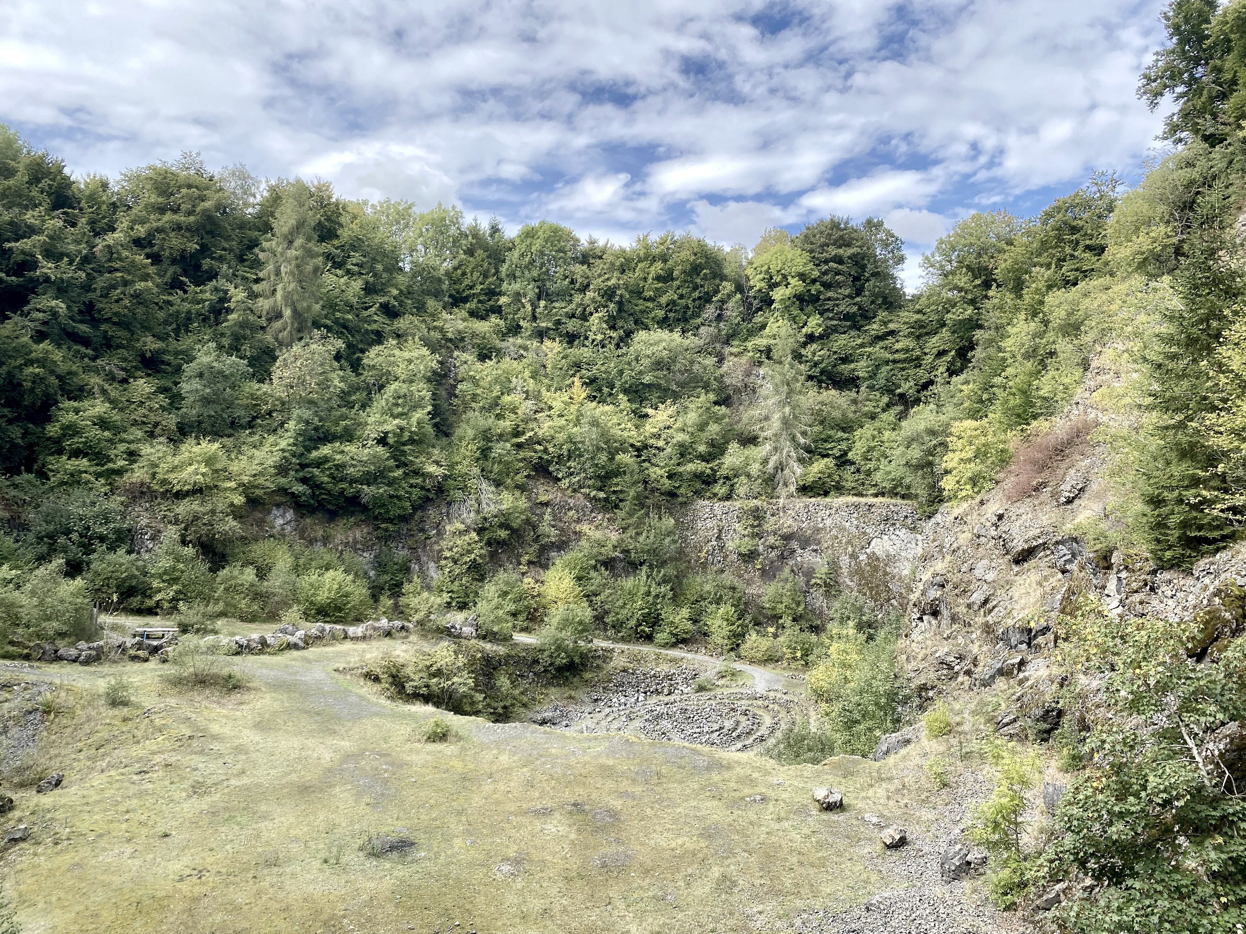 Der Arensberg, eine der größten geologischen Attraktionen Gerolsteiner Land, ist die einzige bedeutende Vulkankuppe aus der Tertiärzeit. Zwei Vulkanausbrüche schufen einen Berg, wo vorher keiner war. Das erste Mal vor etwa 32 Millionen Jahren, der zweite Ausbruch erfolgte dann vor etwa 24 Millionen Jahren. Früher war der Arensberg deutlich höher. Während an den alten Aschenablagerungen des ersten Ausbruchs die Jahrmillionen zehrten, waren es dann im 19. Jahrhundert die Menschen, die dem Berg seinen Gipfel nahmen. Nach und nach drang man immer tiefer in den Berg vor und folgte dem Schlot in die Tiefe. Durch einen Stollen kann man den Krater betreten. Hier bietet sich im alten Steinbruch ein beeindruckender Blick in das Innere eines erloschenen Vulkans. Im weiteren Verlauf wartet die imposante XXL-Bank mit einem beeindruckenden Panoramablick.