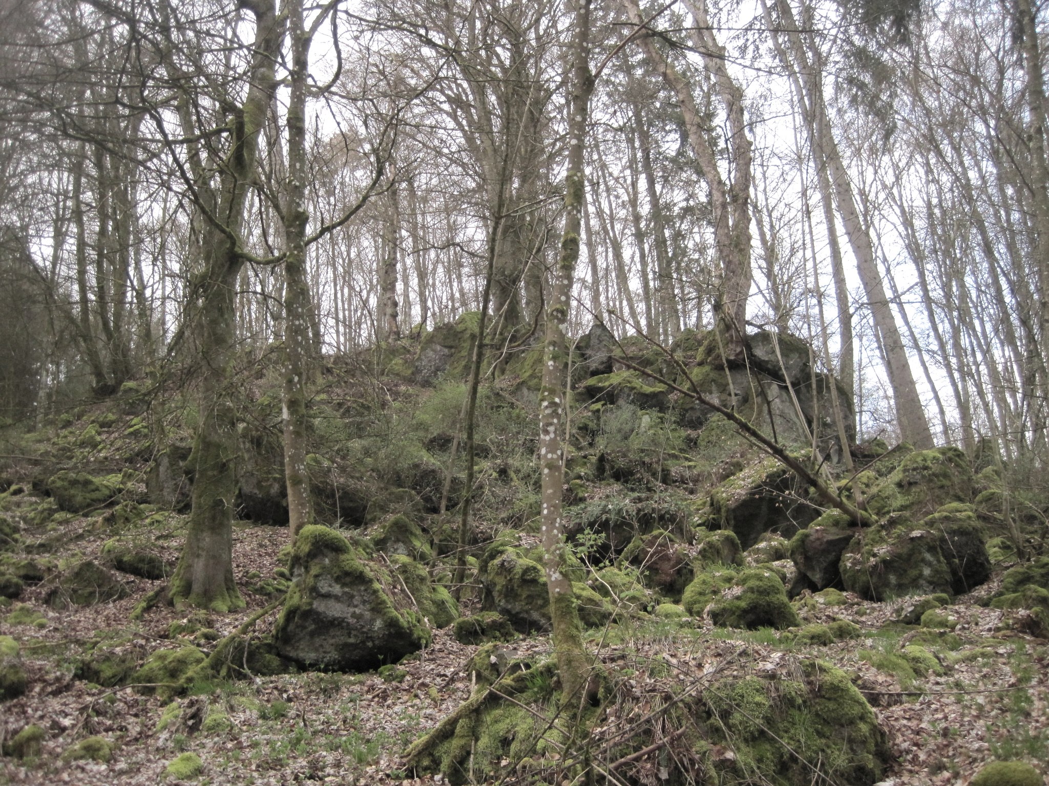 Im ehemaligen Steinbruch Wolfskaul wurde 1904 ein gut erhaltenes Wirbeltier-Skelett gefunden, der Eifelosaurus triadicus. Der Eifelosaurus lebte in der mittleren Buntsandsteinzeit vor ca. 235 Millionen Jahren. Vulkanische Ablagerungen sieht man am Aufschluss Lühwald. Hier kann man mehrere Ausbruchphasen unterscheiden. Weiter führt der Weg um die Vulkane Wetschberg und Mühlenberg. Ab Basberg folgt man dem Tieferbach und biegt dann ab, um nach der Umrundung des nördlich von Oberbettingen liegenden Vulkan Ruderbüsch zum Ausgangspunkt zurückzukehren.