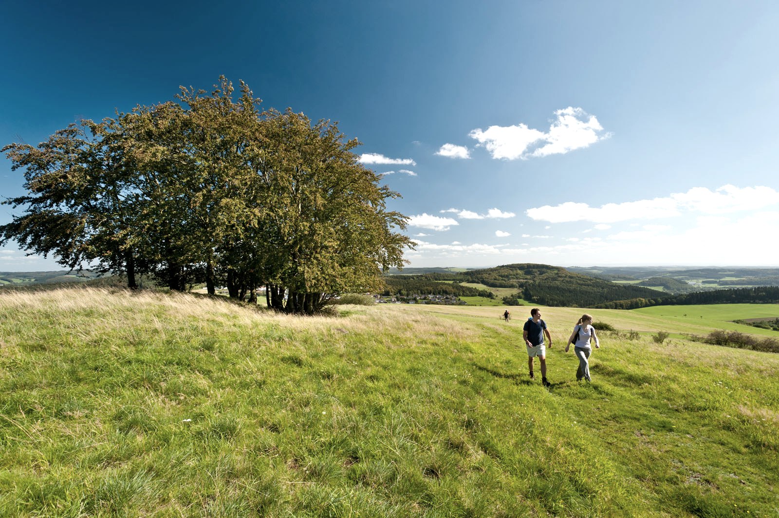 Lust auf Schweißschlacken und Olivinbomben? Keine Angst, was furchterregend klingt, ist samt und sonders sehenswert, besser: wandernswert. Dem Ernstberg fehlen knappe 120 Zentimeter zur 700-Meter-Marke, er ist der Höchste der Westeifelvulkane. Aus den Tiefen des Dreiser Weihers, einem Trockenmaar, sprudelt eine Mineralquelle. Herrlich aussichtsreich, mit Kurs auf Vulkanberge, wie den „Auf der Wacht“, die Ostseite des Ernstberges mit der Martinswand oder dem Asseberg, gelingt die Annäherung an das schöne Eifelstädtchen Daun.