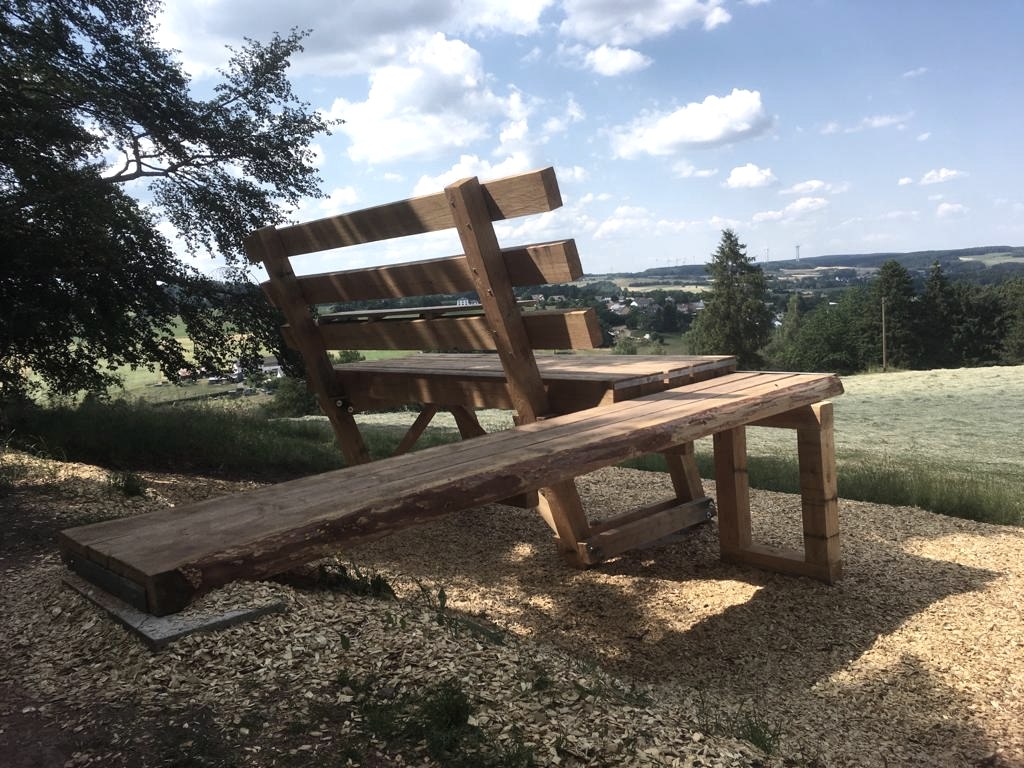 Die XXL Bank bei Kerschenbach bietet den Besuchern einen schönen Weitblick über die schöne Landschaft rund um Kerschenbach und auf das anliegenden Feriendorf.