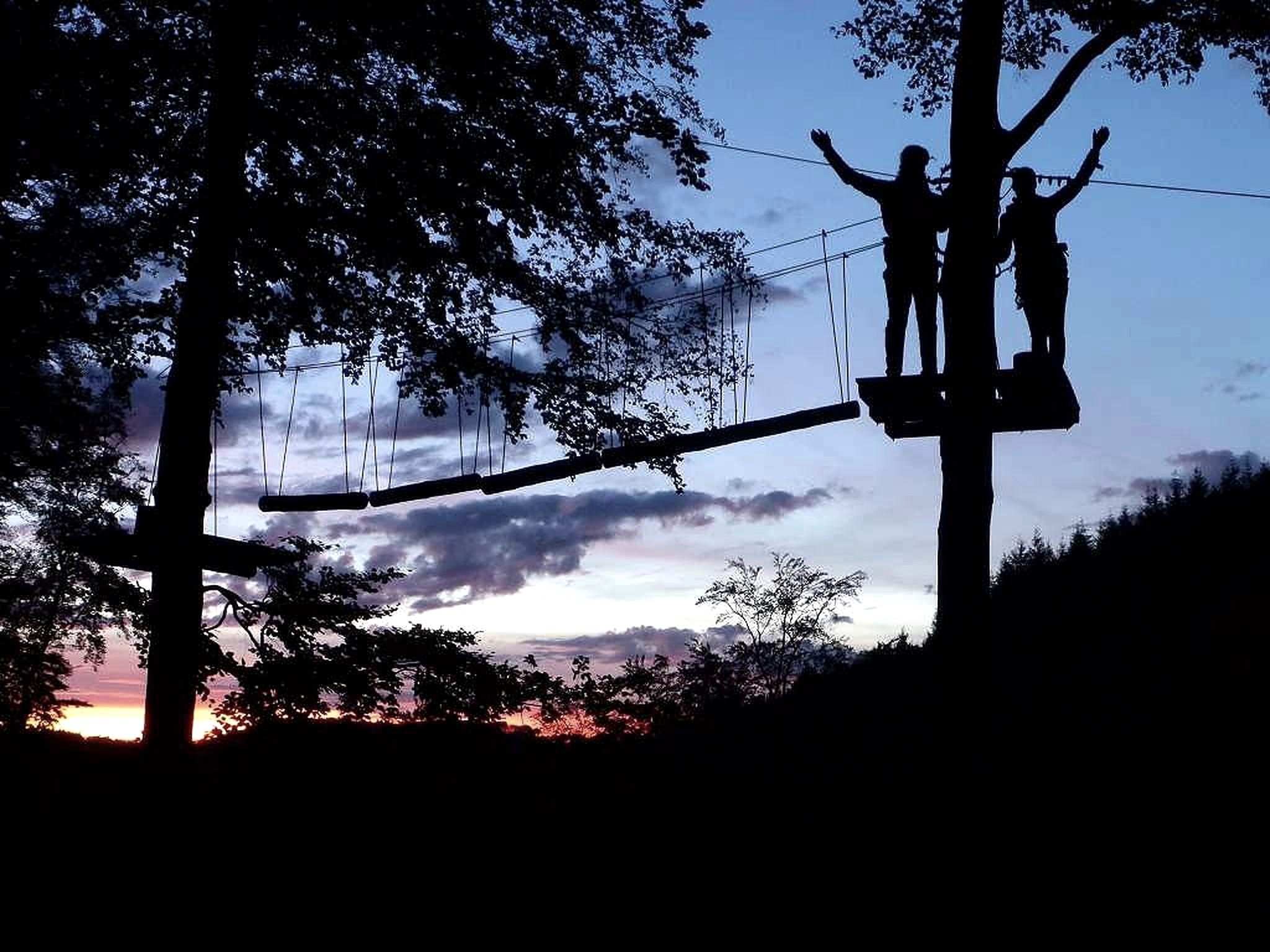 Special: Night-Ziplining: Fühle deinen Puls während du durch den Wald und die Nacht zipst. EifelAdventures bietet dir die Möglichkeit in der Dunkelheit der Nacht, lediglich im Licht des Vollmondes, zu ziplinen. Die Night-Touren beginnen kurz vor Sonnenuntergang und führen dich durch die Dämmerung der Nacht. Du erhältst die Chance einen wundervollen Vulkaneifel-Wald von den Baumkronen aus zu erleben, während sich die Sonne senkt und die Sterne am Himmel empor steigen