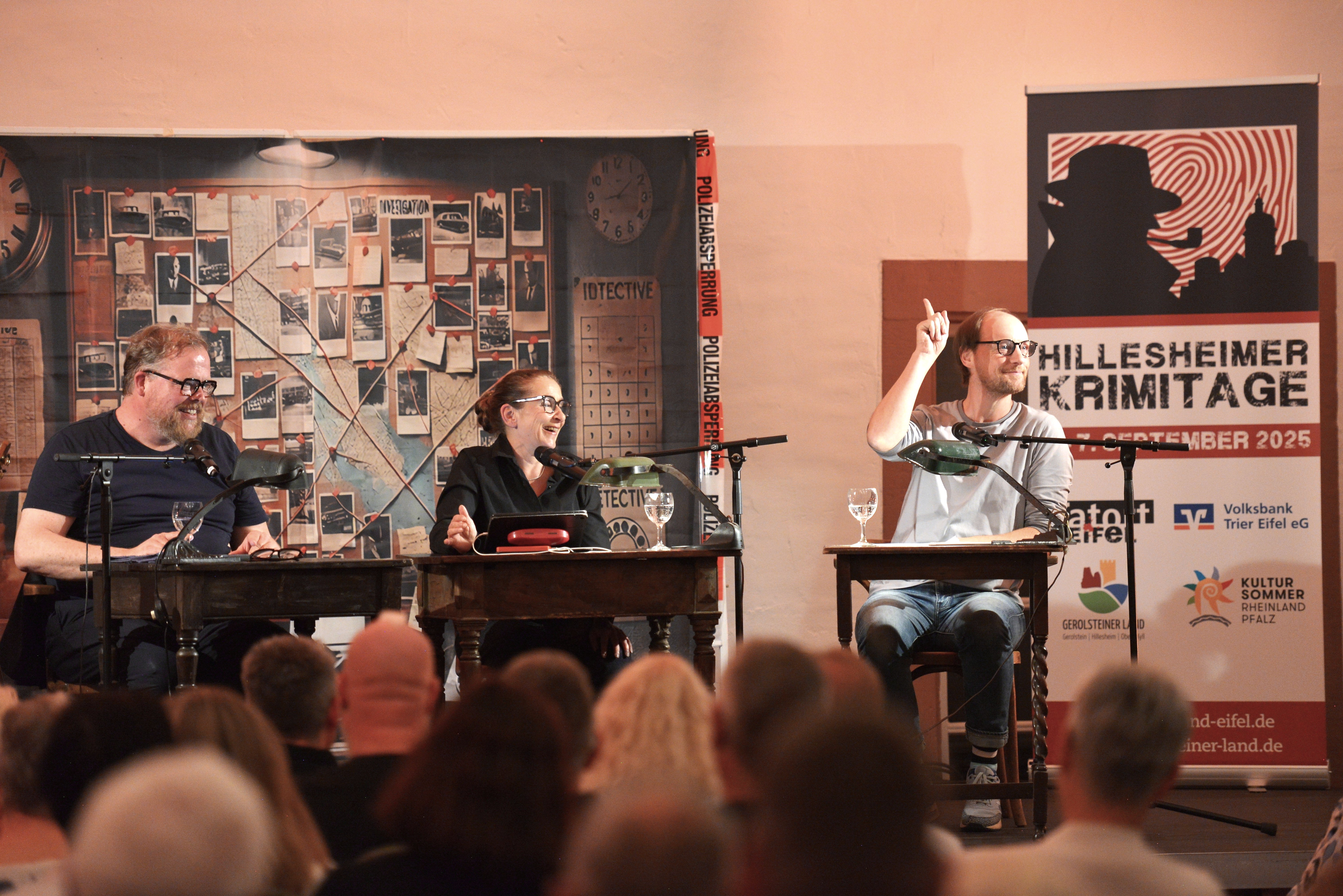Barbara Philipp, aufgewachsen in Wittlich, ist einem breiten Publikum bekannt aus Serien wie Ein Fall für zwei, Bella Block, Babylon Berlin und dem Tatort Wiesbaden. Steffen Will, aus Prüm stammend, überzeugte mit seiner Vielseitigkeit, die er bereits in Wilsberg, SOKO Köln und der Krimiserie Heldt unter Beweis stellte. Bernd Hölscher, aufgewachsen in Daun, war über zwölf Jahre festes Ensemblemitglied am Staatstheater Kassel und ist seit 2016 vermehrt in Film- und Fernsehproduktionen wie Polizeiruf 110, Ostfriesenschwur und Achtsam morden zu sehen. Mit einem sicheren Gespür für die Dramaturgie des Moments machten alle drei deutlich, wie lebendig und vielschichtig Kriminalliteratur auf der Bühne zum Leben erwacht.