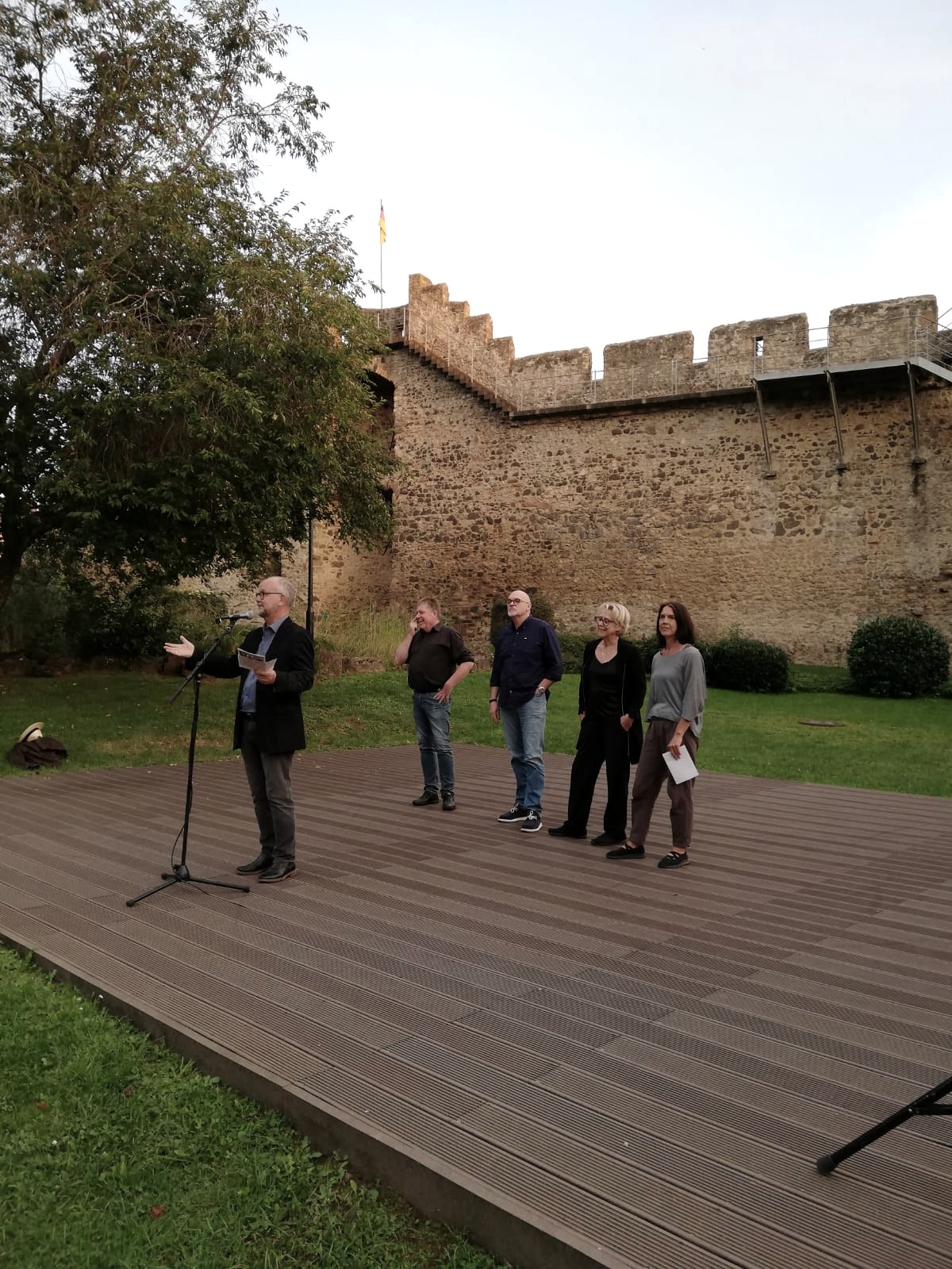 „Lass die Vergangenheit ruhen“ hieß es dann am Sonntag, als die bekannte Autorin Andrea Revers aus der Vulkaneifel in einer Premieren-Lesung ihren brandneuen Kriminalroman um ihre „Eifeler Miss Marple“ vorstellte. Ein Vermisstenfall stellt hier den Auftakt zu einem packenden Krimi und einer Reise durch die finsteren Abgründe des menschlichen Seins dar. Unterstützt von Detlef Reuter am Akkordeon ließ Andrea Revers in der Alten Schreinerei ihre Figuren lebendig werden und plauderte nebenbei munter aus dem Nähkästchen ihres Autorinnenlebens.