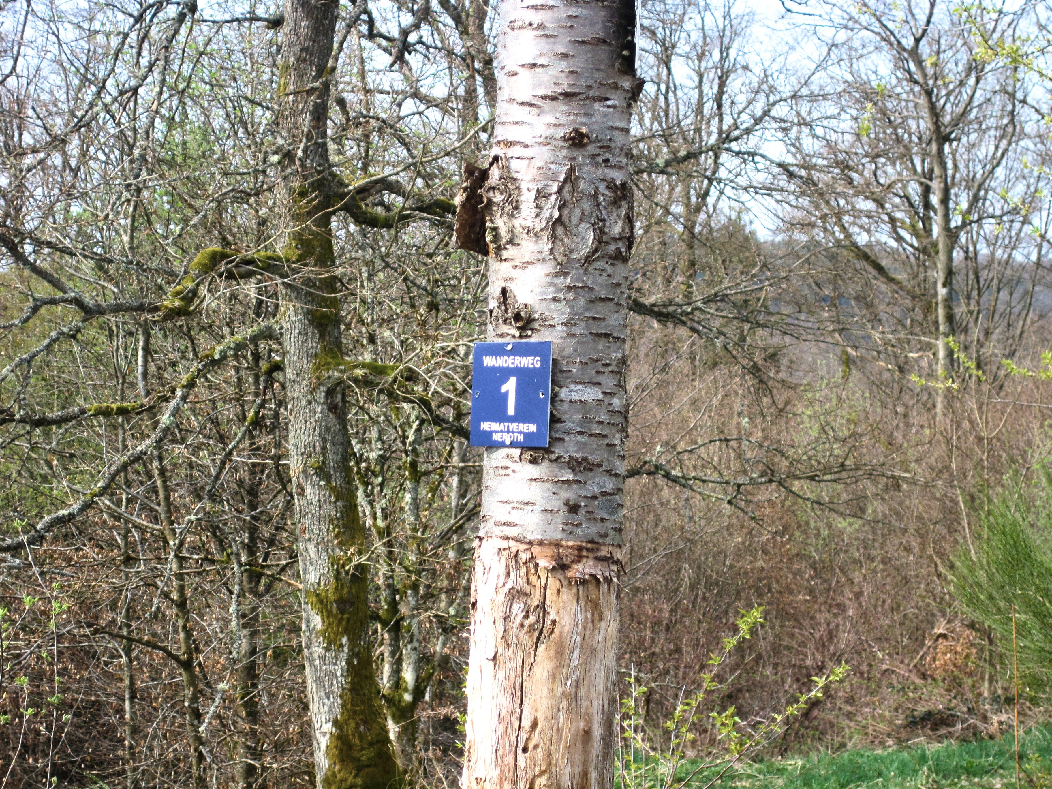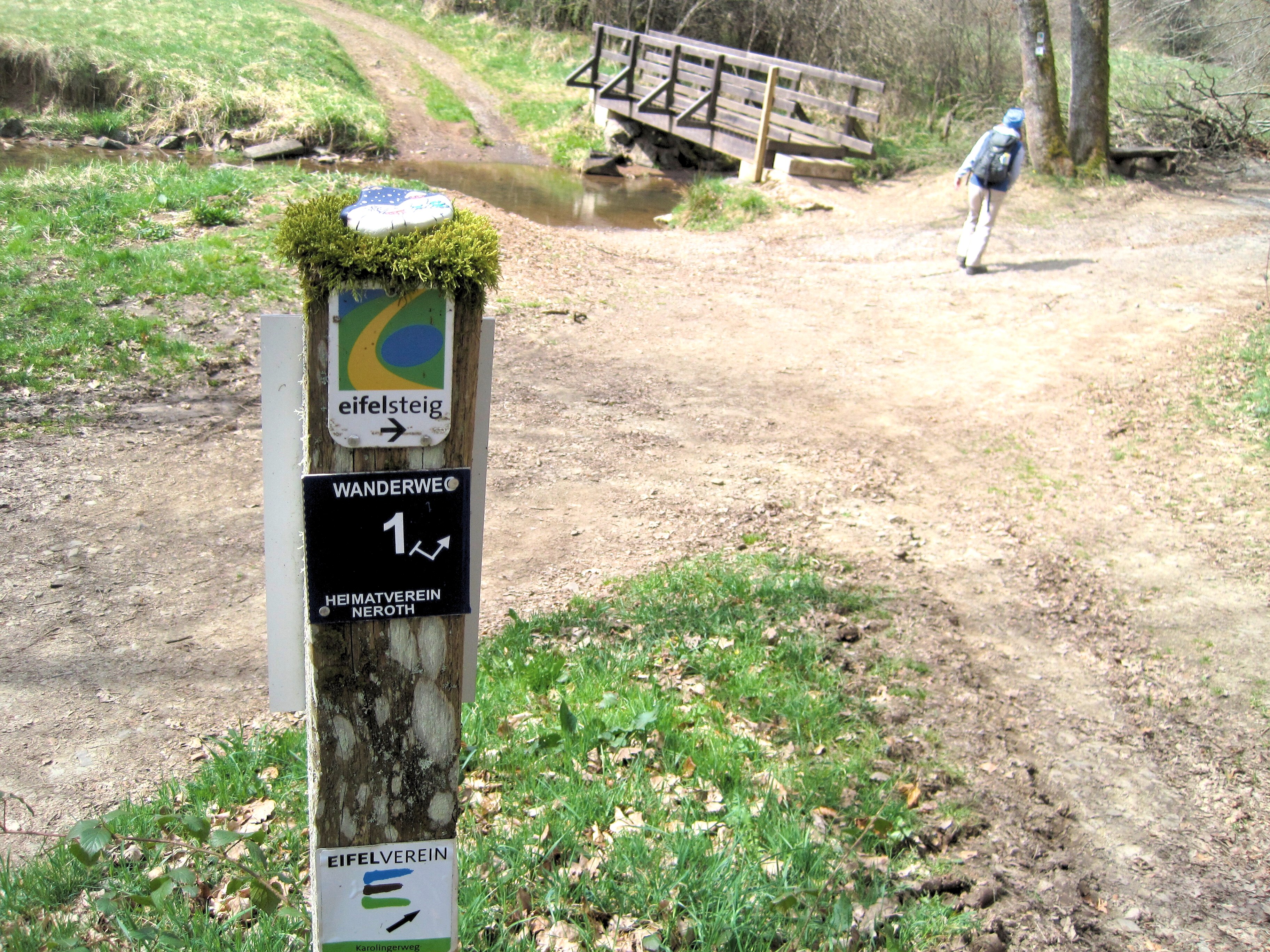 We take the main road south in the direction of Oberstadtfeld. After leaving the village, we cross the L27 and turn right in a south-westerly direction. Through forest and field, we follow the trail marking "1" and thus create a large arc around Neroth.