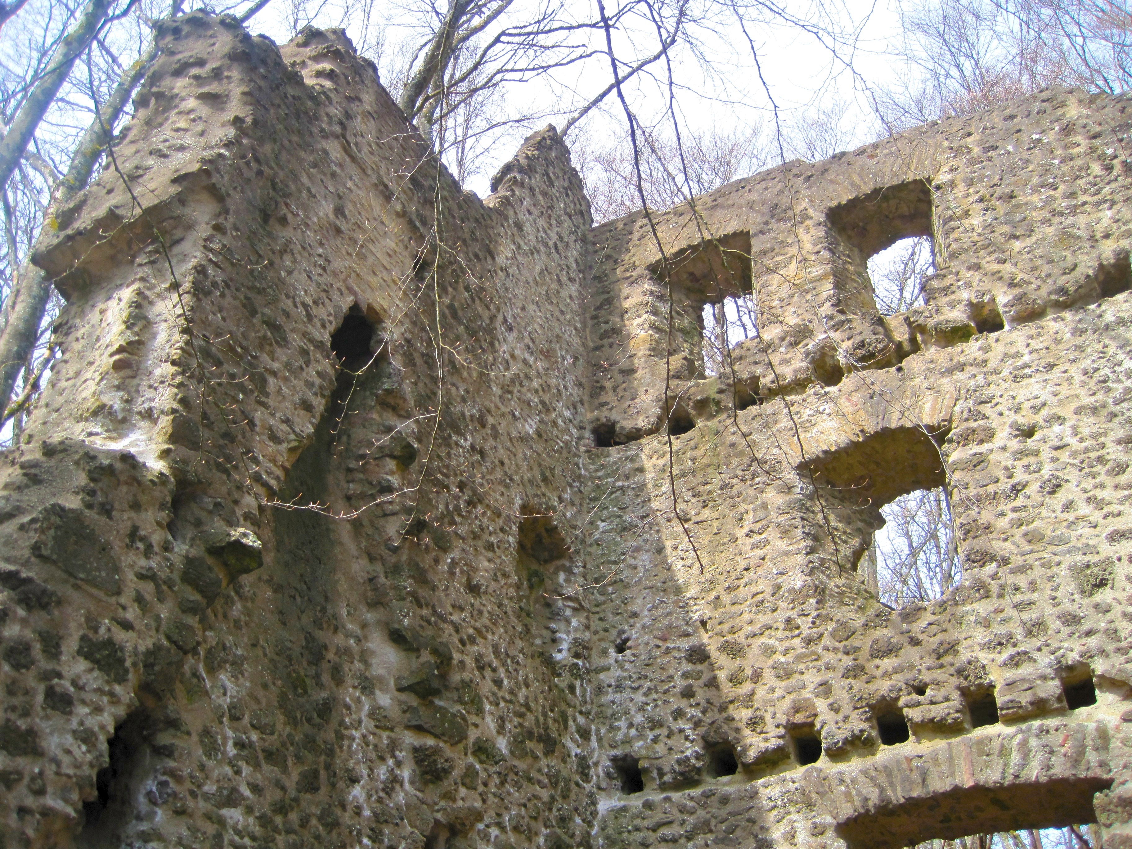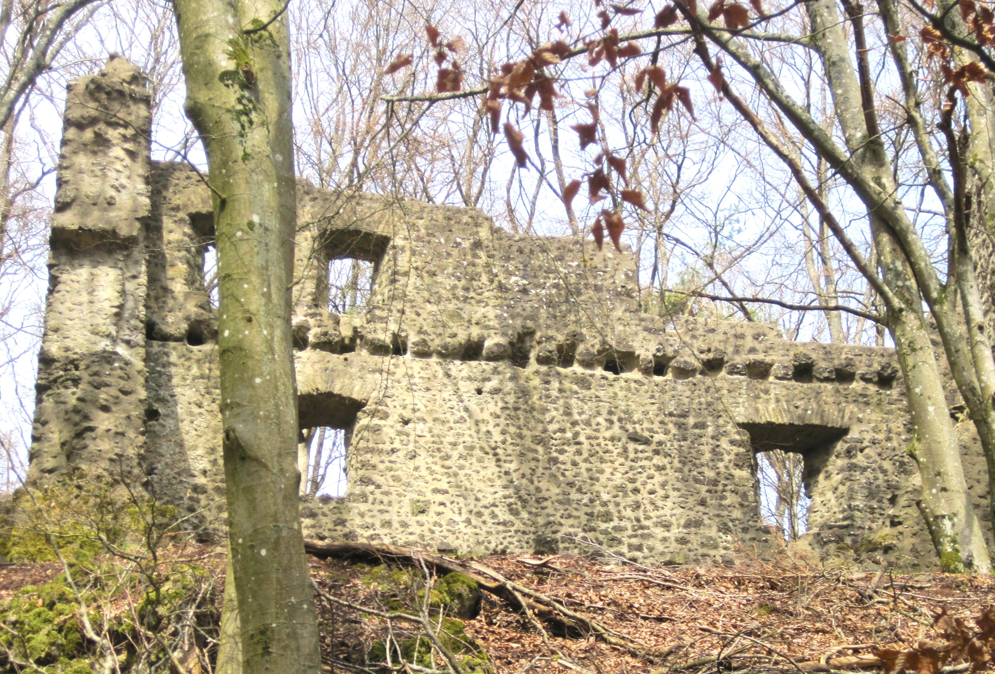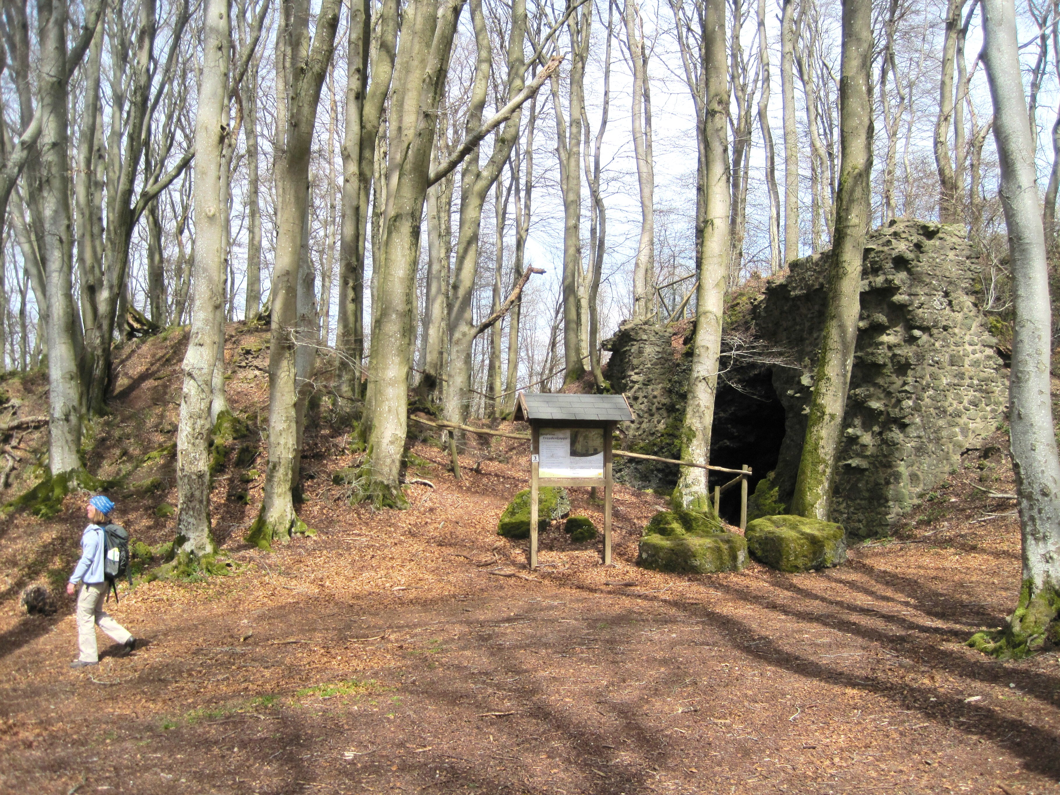 However, the highlight awaits us towards the end of the circular walk when we pass the Nerother Kopf at an altitude of 659 metres. The Nerother Kopf is an extinct volcano. The Nerother Kopf was held in high esteem in earlier times and a castle was built on it to protect the domain. The ruins of Freudenkoppe Castle, which date back to the 14th century, are now a listed building. To the left of the path in the middle of the forest, the medieval castle ruins and the "Mühlsteinhöhle" (millstone cave) are hidden.