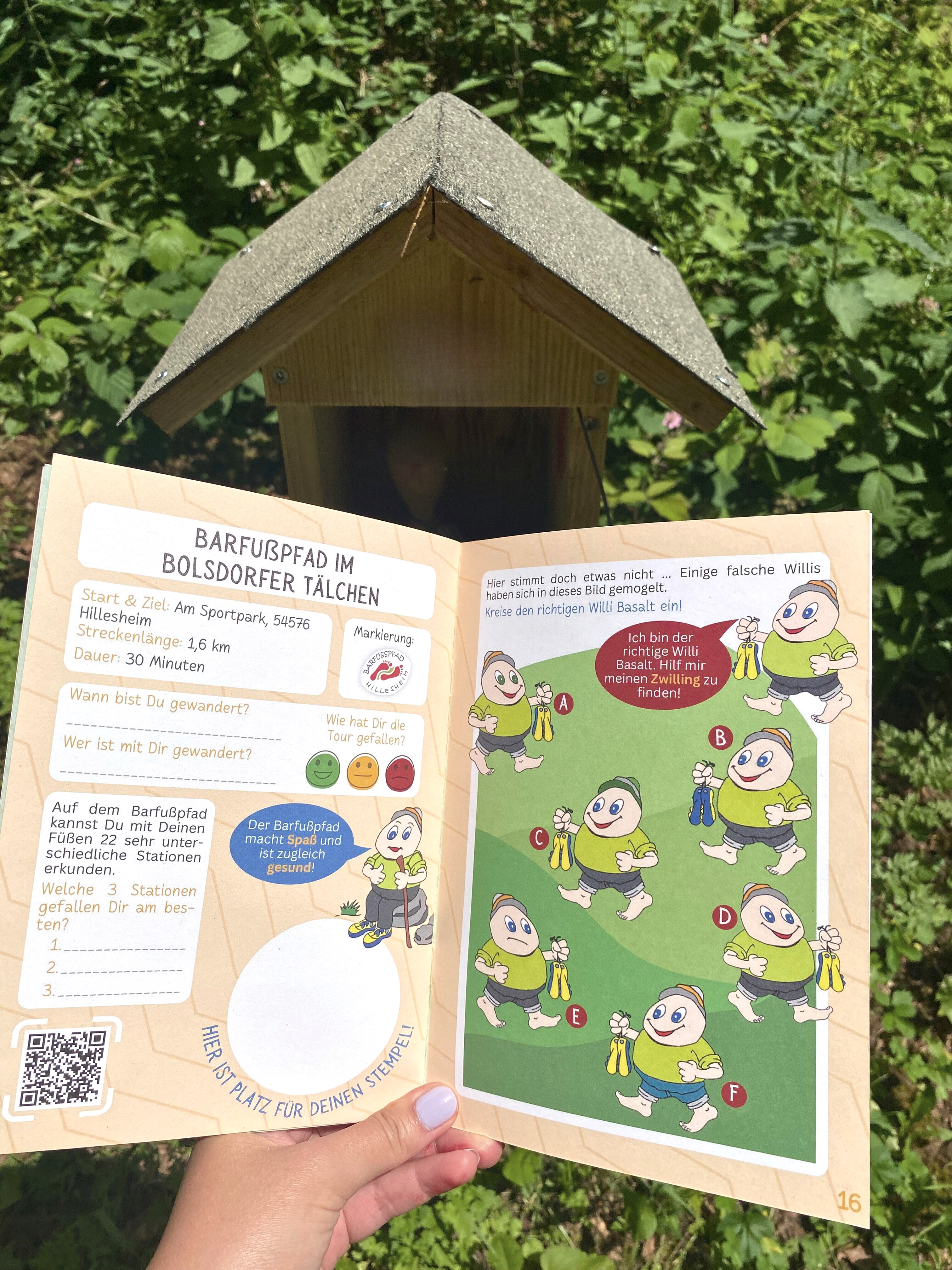 The barefoot trail is 1.6 km long and has 22 stations. First, the path leads over various pavements and sandy paths to the lake. Here, after getting a little cooling in the water, the stages start over sea sand, pearl gravel, fine splits, coarse gravel, lava sand, tree bark scrap or mulch to the brook bridge. Here you go either through the gravel road or over the bridge and then over tread plates, lawn banquets and balancing beams. If you feel like it, then take the via ferrata to the limestone cave and after a meadow stage you come back to the lake, where you can cool down in the water again. For the love of your health: get on the road!