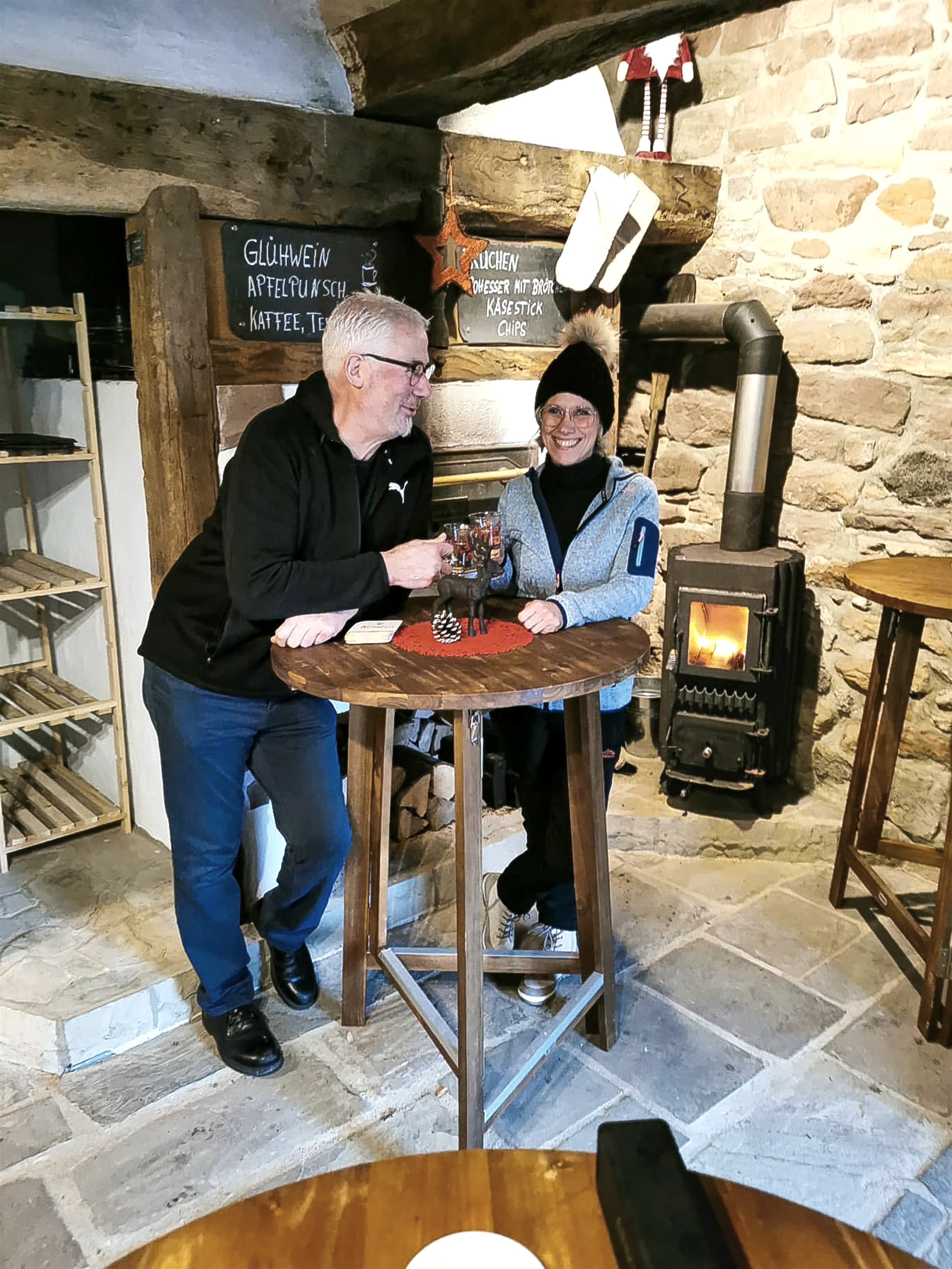 We are Anja and Rainer Schoos with our children Susanna and Sophia. We run our small outdoor restaurant as a hobby and for the fun of genuine Eifel hospitality. We open in summer when the weather is nice and in winter when it's mulled wine time. Our carefully selected, limited offer consists mainly of products with quality and regional reference, such as yeast cake from our wood-fired oven, coffee specialties, cold drinks, draught beer and seasonal snacks. We look forward to welcoming you as our guests.