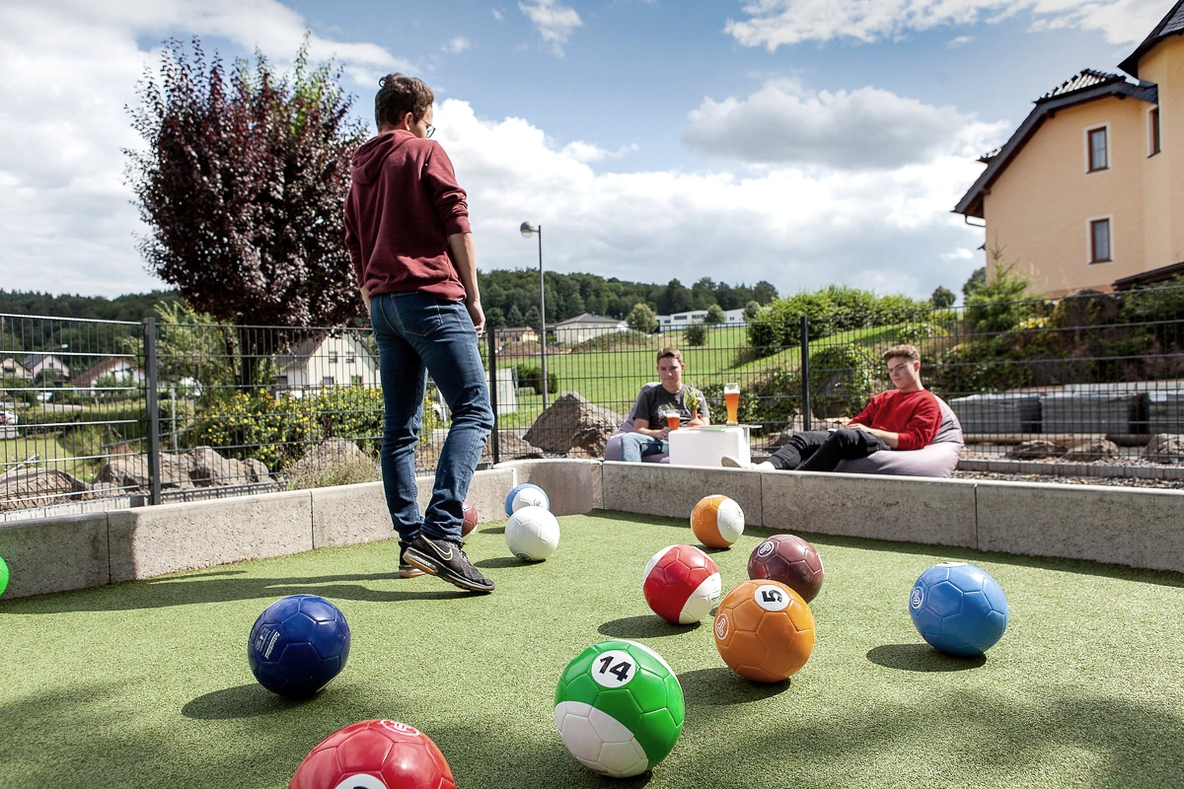 •Action-charged round of football billiards or cross-boule