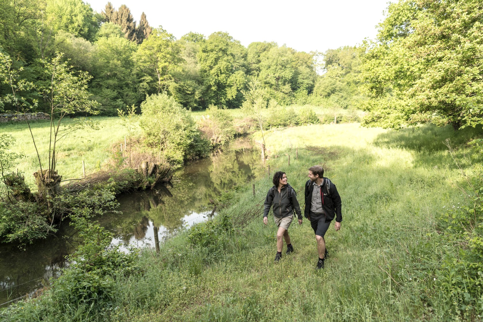 The "slowing down" effect of Himmerod Monastery continues on the next stage of the Eifelsteig Trail: the trail follows the varied course of the River Salm, past its colourful riverbank flora and numerous mills and through ancient tree populations with wide overhanging crowns. Geologically interesting, almost perpendicular shale rock formations stand to be admired, as does the superb view of Bruch, with the two towers of its historic castle.
