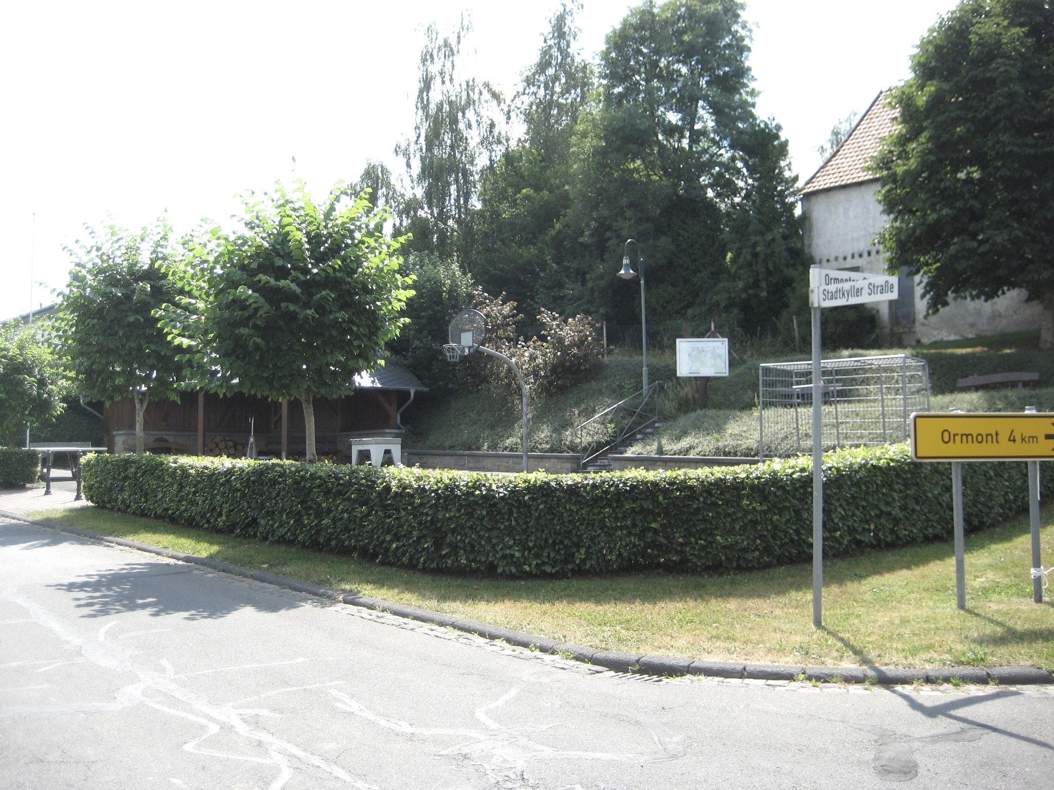 From the car park at the town hall in the centre of Kerschenbach in Stadtkyller Straße, we walk along the village road (eastwards) and pass the local rest area with a shelter and children's playground. There is also a large information board from the North Eifel Nature Park here. Shortly after the rest area, we cross the Kerschenbach stream on a road embankment and then turn up the stream valley onto a field path until we reach the confluence of the Kalkerbach and Dürrbach streams to form the Kerschenbach stream. Here there is an information board about a mine accident that took place here in September 1945. We then turn uphill back to the village square.
