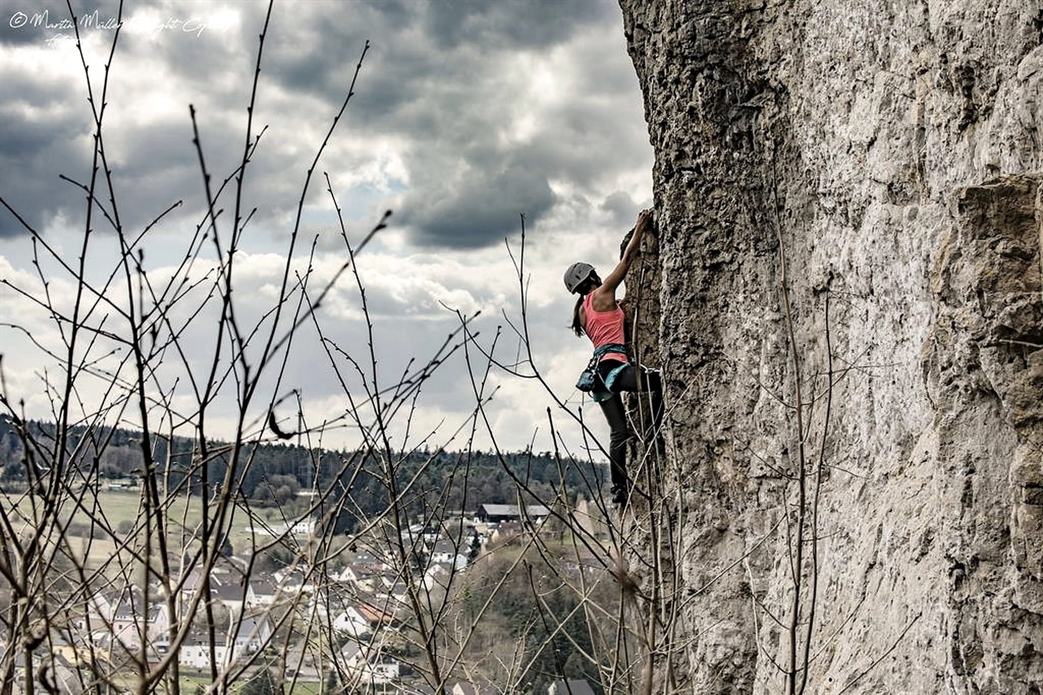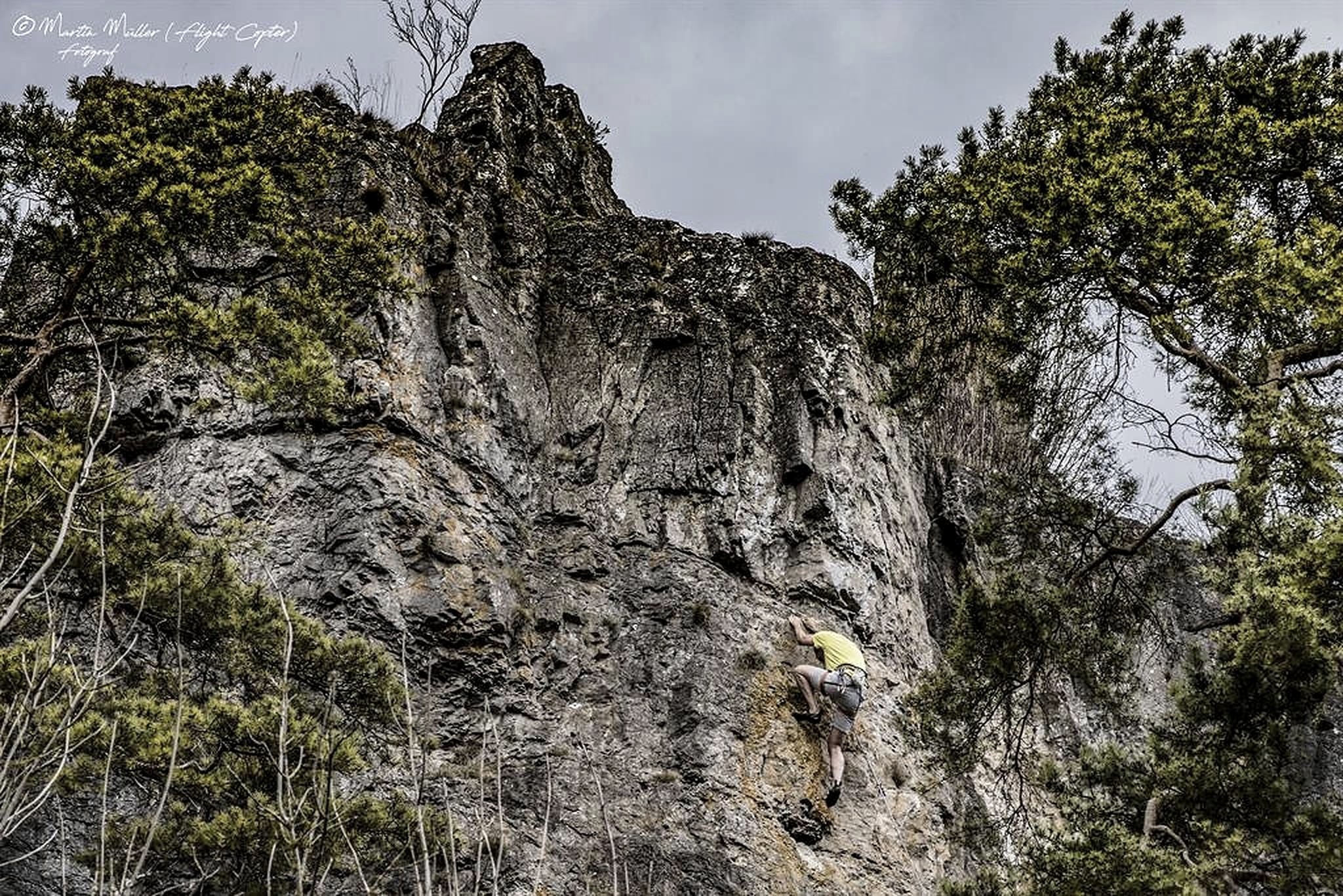 The climbing rock "Hustley" is located in the nature reserve "Gerolstein Dolomites". The number of climbing permits per day is limited to approx. 10 persons. Climbing is only allowed after obtaining a climbing permit! The climbing permit can be purchased online in our ticket shop or on site at the Tourist Information Gerolstein, 54568 Gerolstein, Tel. -No. 06591/13 3100, Email: touristinfo@gerolsteiner-land. de. The issuance of the permit is subject to a fee; per day/person 5,00 €.