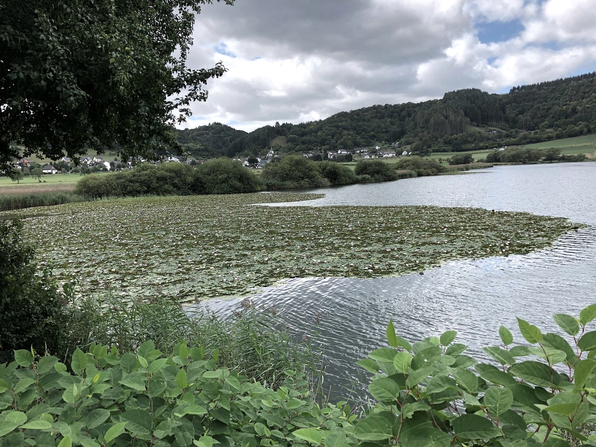 In the south the pretty village Meerfeld nestles on the steep slopes. Here the flowing Meerbach flooded loose material ejected during the eruption. So the water was pushed into the northern part and the approximately 18 meters deep Maar lake was born. But not only natural circumstances contributed to the downsizing of the Maar lake: During the 19th century parts of the Maar basin have been artificially drained in order to create additional agricultural land. Currently the lake, which lies at an altitude of 335 metres a.s.l., has a water surface of 24.8 hectares and is approximately 18 metres deep.
