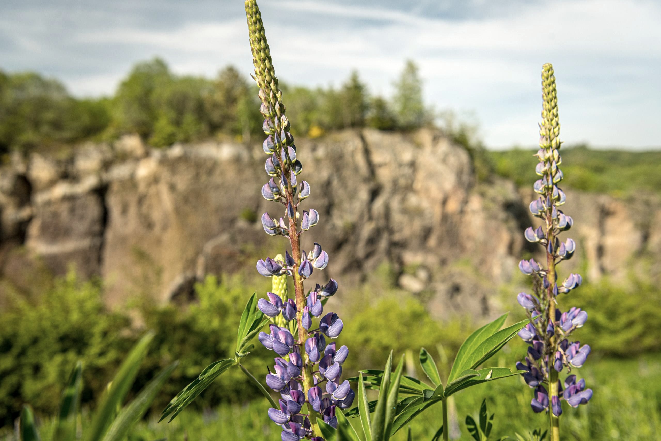 The volcanic cone of the Steffelberg originally had a summit height of 609 metres above sea level. The mining of cinders in the last century led to the lowering of the mountain peak by 60 metres and created a deep hole in the landscape. This exposed the former eruption layers and today's visitors can look into the crater and recognise the volcanic processes. The eastern part of the crater fill has been preserved in the volcano garden. Large areas of slaggy lapilli and ash can be seen in the interior. Very finely crushed and layered material is also clearly visible at the edge of the path. Then again, there are areas where coarser material has already been partially redeposited on top of the normal layers. A special feature of the Steffelnkopf are two intersecting basalt veins in the vent area. After the actual eruption of the volcano, hot material once again surged upwards, forming a lava lake in the upper area. After the Second World War, the volcanic cone was heavily hollowed out by the exploitation of the economically usable materia