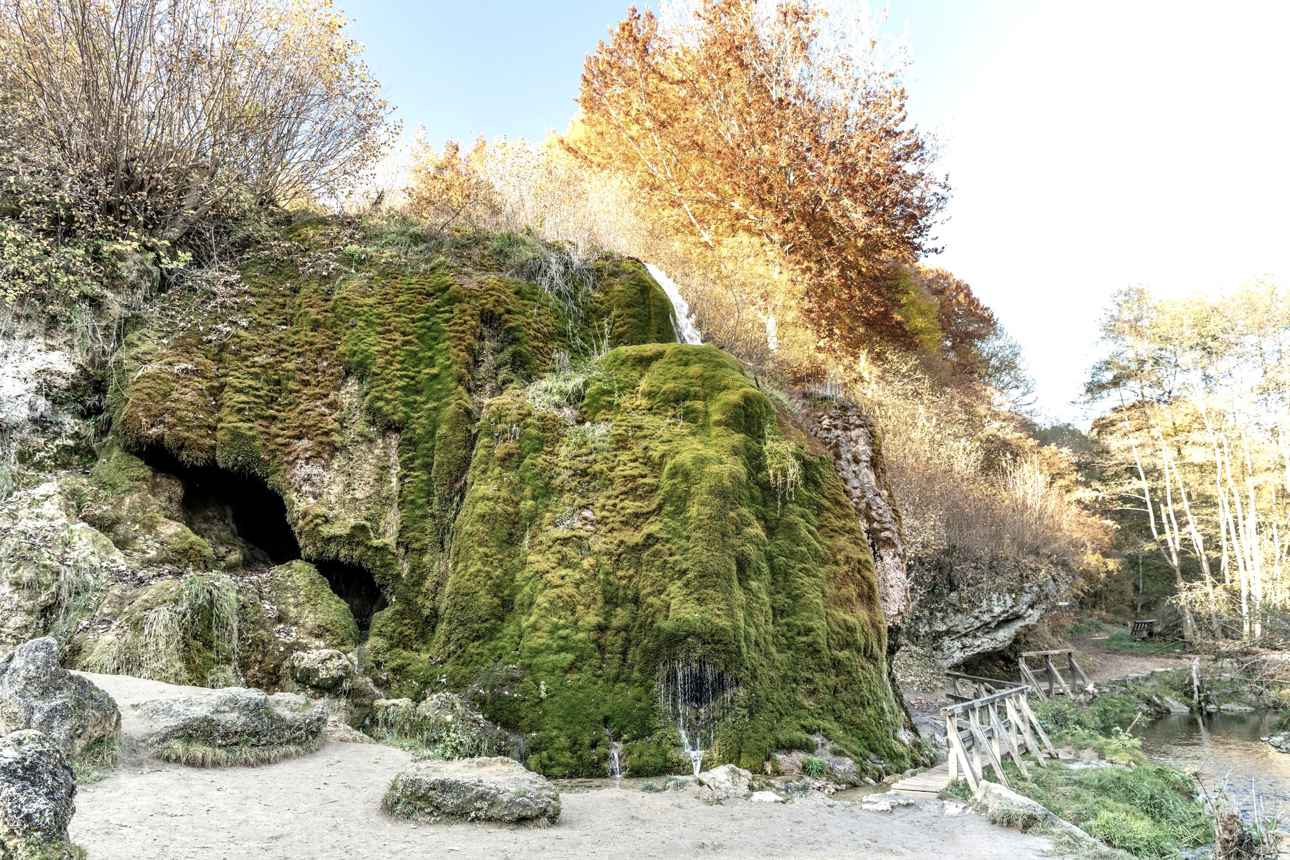 Due to the constant deposition, the sinter bank "grows" further and further forward into the valley (about 10 cm per year), hence the name "growing waterfall"!