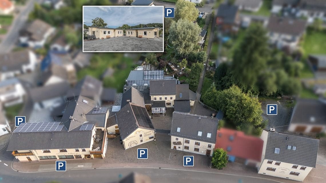 The hotel "Am Eifelsteig" is part of the "Mausefalle" gastronomy complex, with a total of five buildings located close to each other.