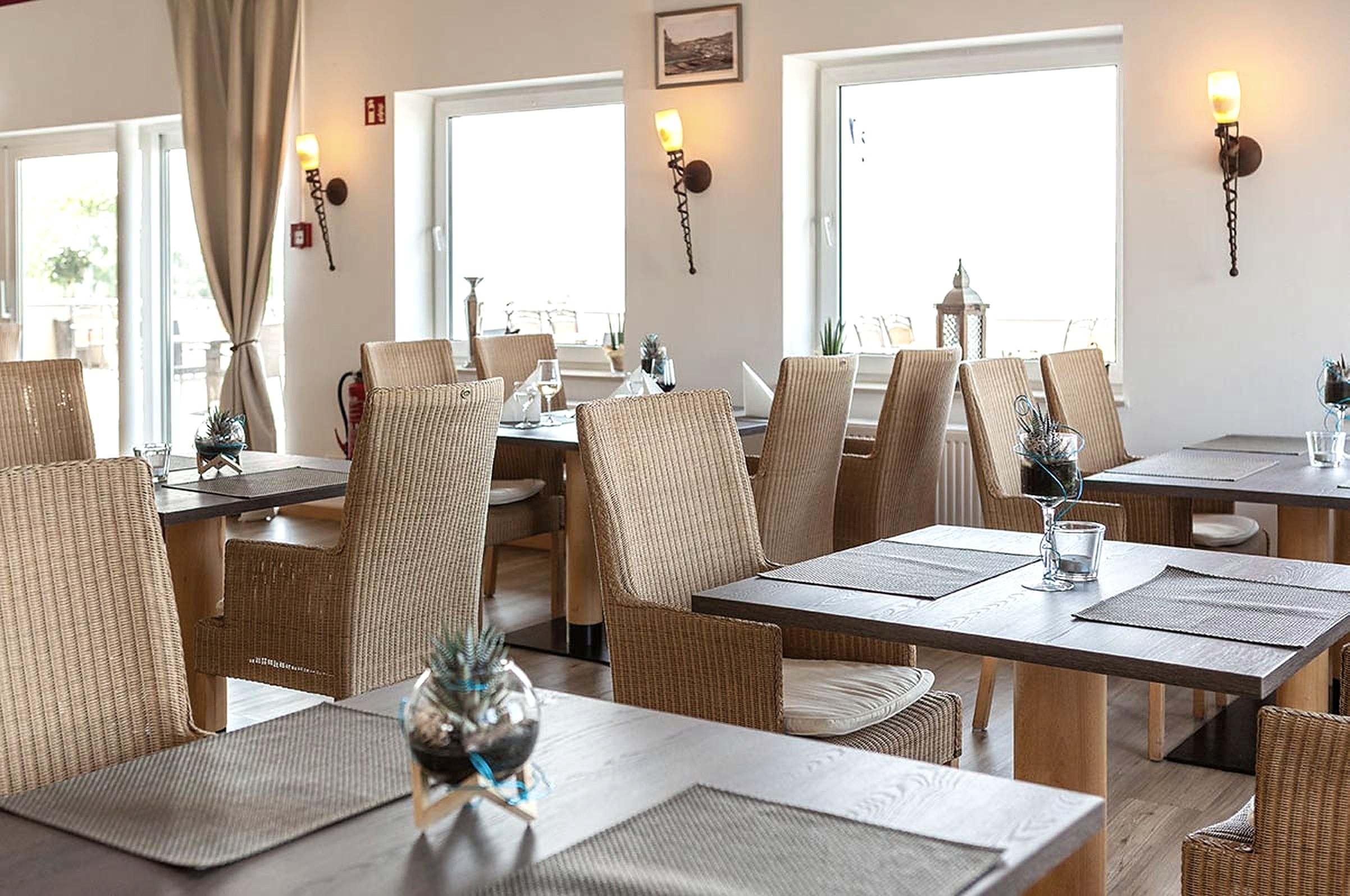 You will experience hospitality and good regional cuisine in our restaurant Leo's with its adjoining terrace. Here you can end the day in the evening sun with a delicious meal and a good drop of wine. You can enjoy your breakfast in the Panorama Room, where you can enjoy the view of the hilly Eifel landscape and the good forest air while having your coffee early in the morning. And of course, guests from the region are also welcome to use our gastronomy. Whether it's for a private party, a cosy dinner with friends or a company celebration, we offer beautiful rooms of various sizes where you can celebrate and enjoy.