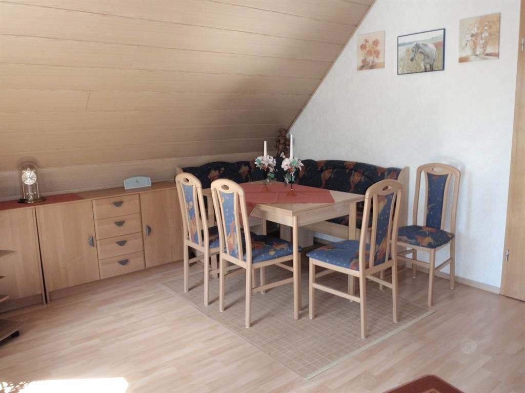Fully equipped 3-star vacation apartment with approx. 80 m², 2 bedrooms, separate kitchen with dishwasher and ceramic hob, shower/WC, free WLAN, satellite TV and living room with balcony - beautifully situated near the forest. Many vacation activities are in the immediate vicinity. Also very popular among "fossil and mineral" collectors.
