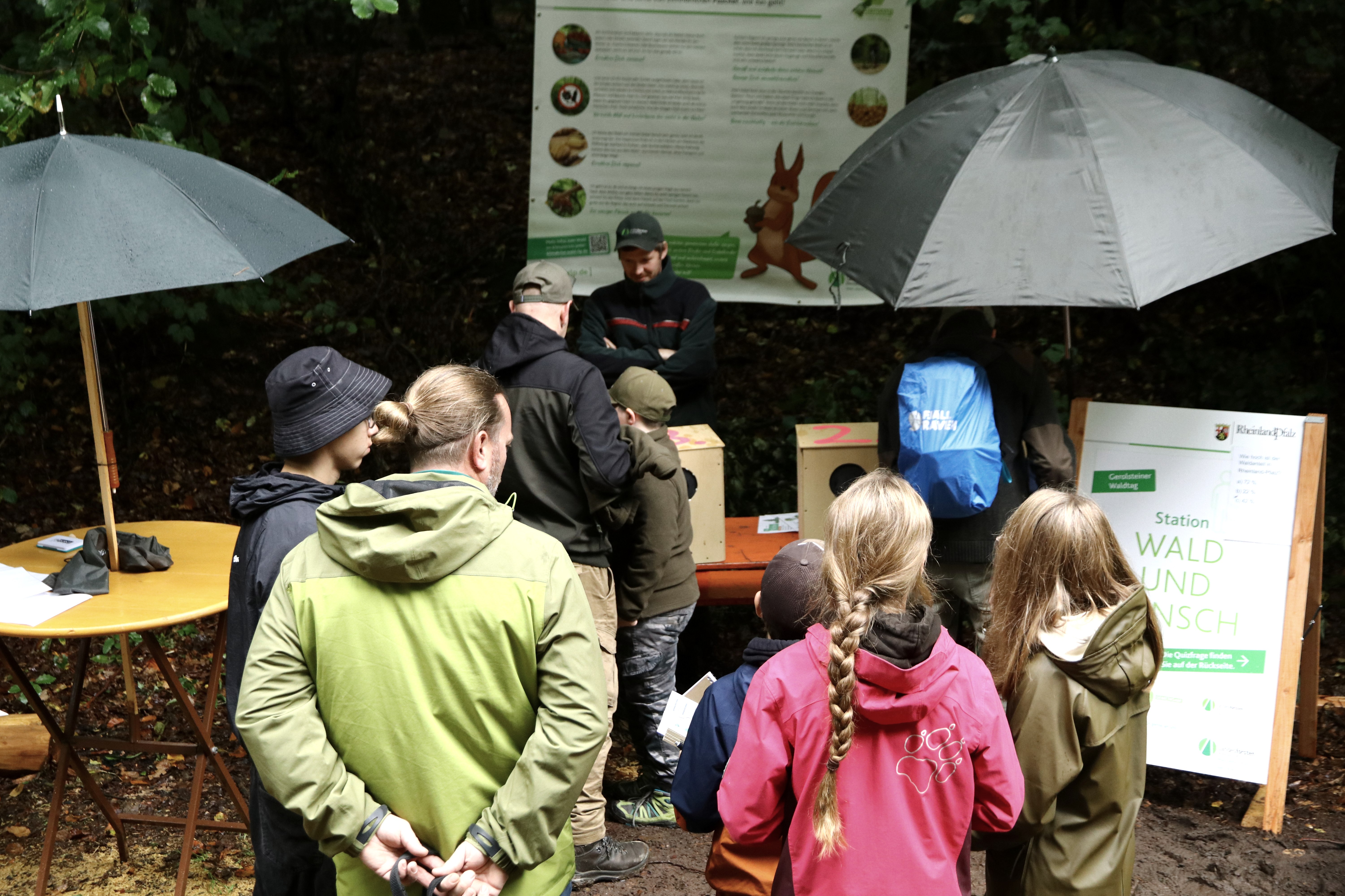 On Sunday, 21 September, the Gerolstein municipal forest was the setting for a special event: the grand opening of the new nature trail with forest ball track took place as part of the state-wide Forest Day and attracted around 1,000 visitors despite persistent rain showers. A particularly large number of children took the opportunity to explore the forest in a playful way and take part in the numerous hands-on activities. Around the ‘Fuchsbau’ hiking car park, guests were treated to a colourful programme that impressively combined nature experiences, entertainment and knowledge transfer.