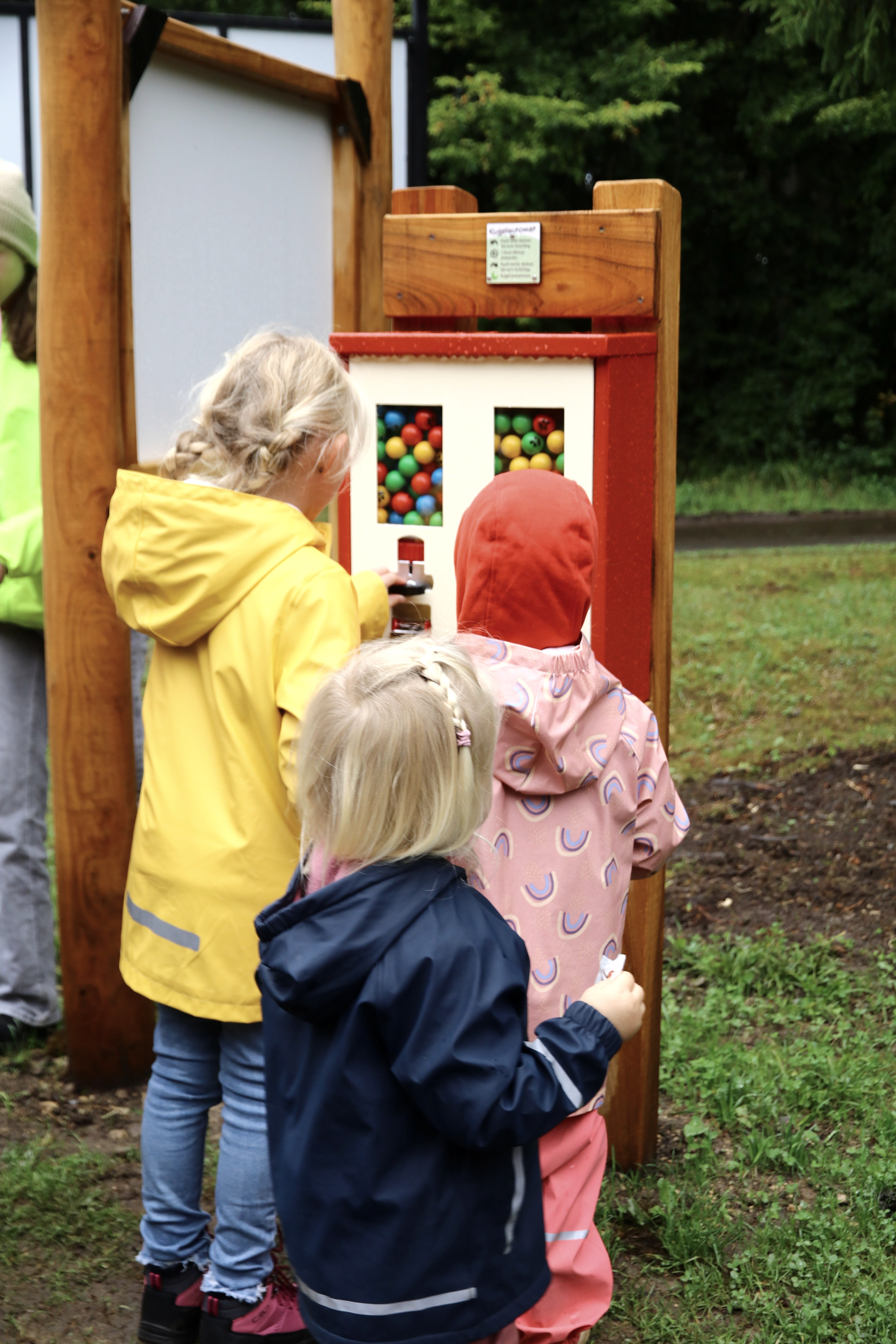 The event kicked off with three speeches that highlighted the importance of the project from different perspectives. Forestry office manager Michael Schimper opened the event with a speech that focused on the importance of the forest. He was followed by Frank Reuter, managing director of Touristik GmbH Gerolsteiner Land, who emphasised the tourist appeal of the new trail. Mayor Steffi Lorisch rounded off the opening with a welcome speech that underlined the local significance of the project. Almost as if on cue, the rain stopped just in time for the symbolic ribbon cutting. Member of the state parliament Jens Jenssen, district administrator Julia Gieseking, mayor of the association of municipalities Hans Peter Böffgen, managing director Frank Reuter and mayor Steffi Lorisch cut the red ribbon together, officially opening the approximately 400-metre-long forest ball track. Shortly afterwards, the first balls rolled through the creative course, which winds its way playfully through the forest and provides interactive elements for movement and discovery. The supporting programme left nothing to be desired: face painting, musical performances and information stands on the forest, the environment and sustainability invited visitors to think and participate. The DRK Gerolstein took excellent care of the physical well-being of the visitors. The big competition, in which visitors had to guess the number of wooden balls in a glass jar, aroused particular interest. Over 200 entry cards were submitted. The best estimates will be rewarded with attractive prizes.