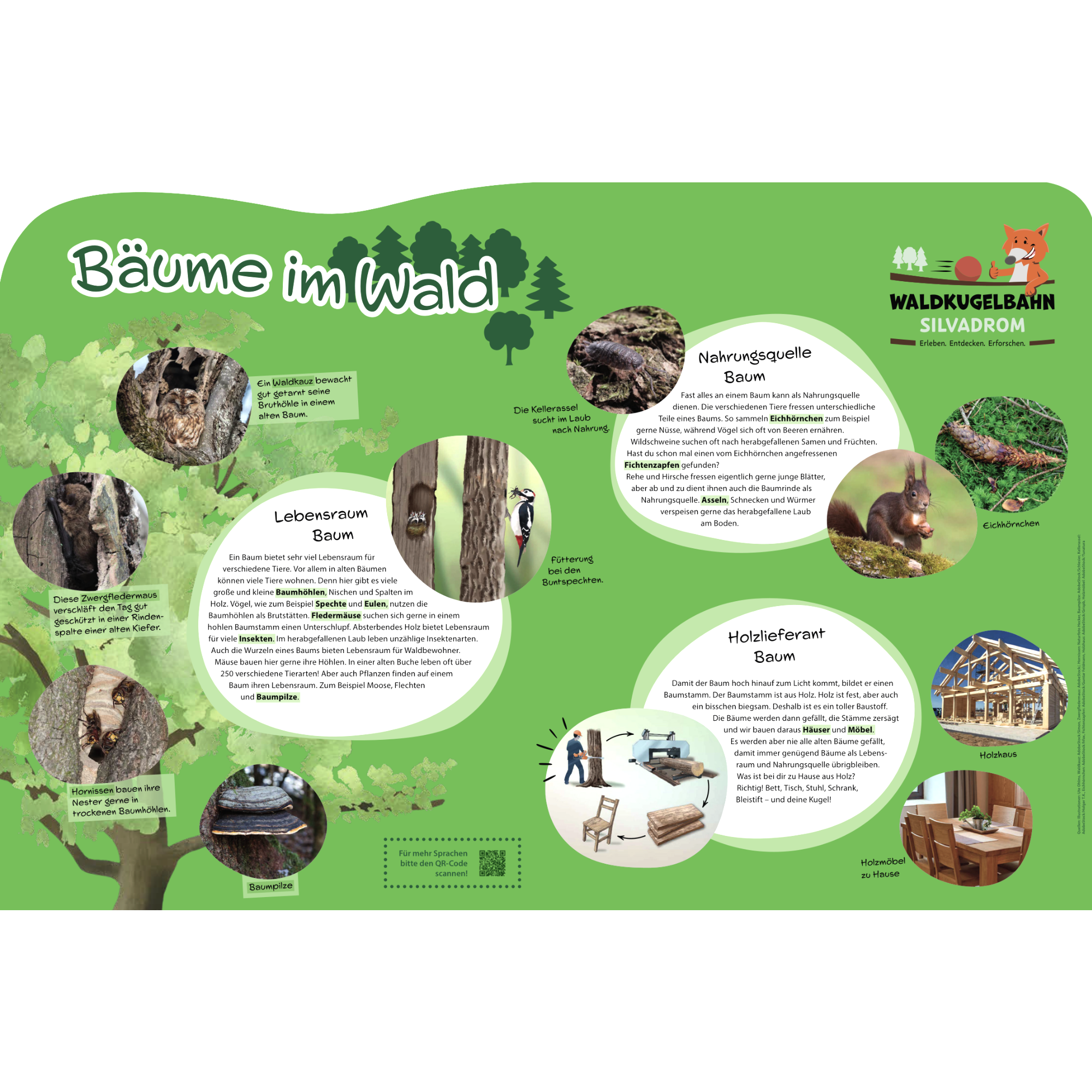 In order for the tree to reach high up towards the light, it forms a tree trunk. The tree trunk is made of wood. Wood is strong, but also a little flexible. That's why it's a great building material. The trees are then felled, the trunks sawn up, and we use them to build houses and furniture. However, not all old trees are felled, so that there are always enough trees left as habitats and food sources. What is made of wood in your home? That's right! Your bed, table, chair, cupboard, pencil – and your ball!