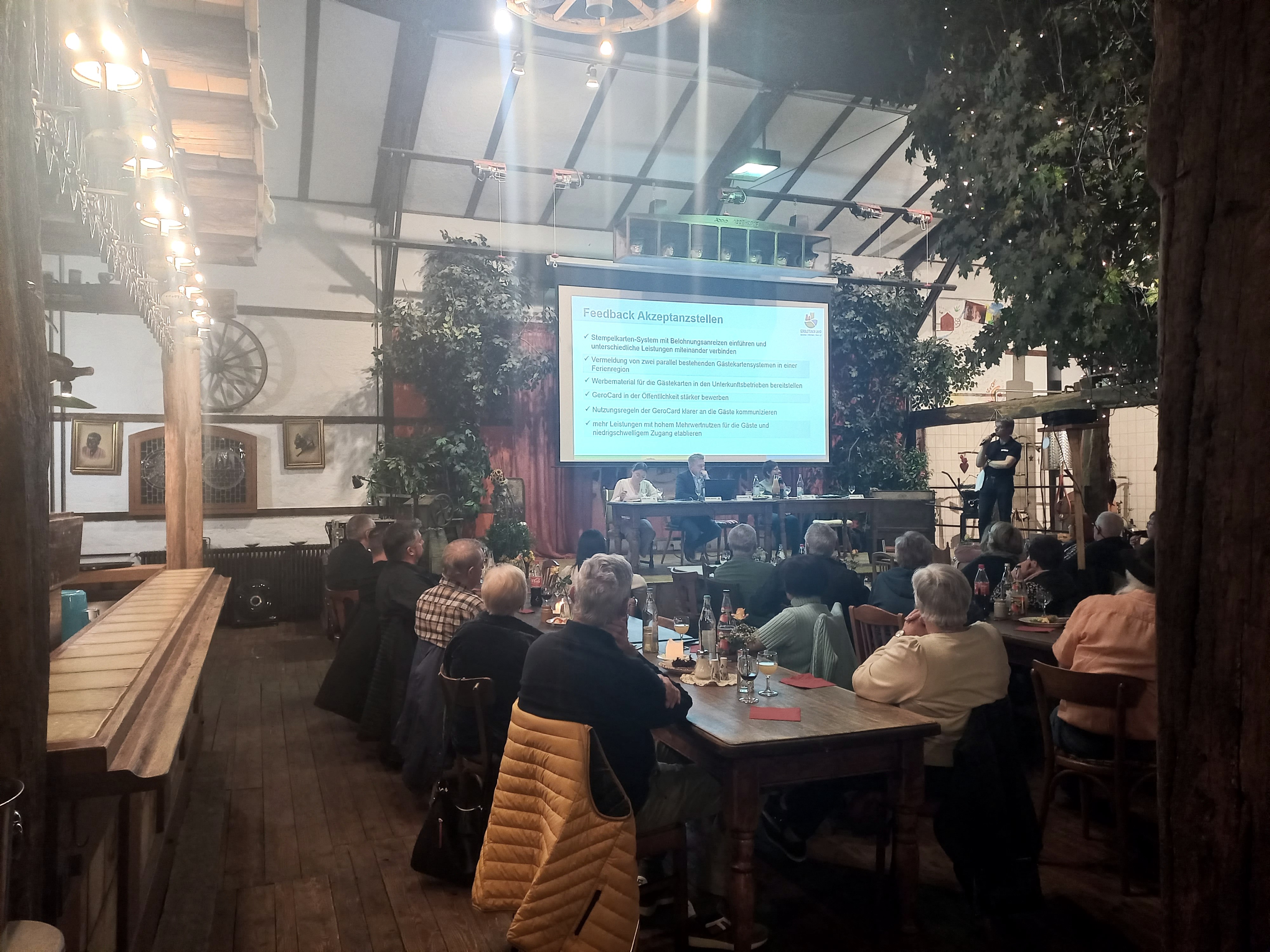 Die Touristik GmbH Gerolsteiner Land präsentierte sich im Rahmen der Veranstaltung als verlässlicher Partner für die touristische Weiterentwicklung der Region. Im Mittelpunkt standen unter anderem die vielfältigen Vorteile der Kooperation mit der Touristik GmbH – von professionellem Marketing bis hin zur strategischen Unterstützung. Ein wesentlicher Schwerpunkt des Abends war aber der im Jahr 2024 eingeführte Gästebeitrag. Dessen Bedeutung und Nutzen für die Region wurden ausführlich erläutert, insbesondere im Hinblick auf die Finanzierung notwendiger Investitionen in die touristische Infrastruktur.