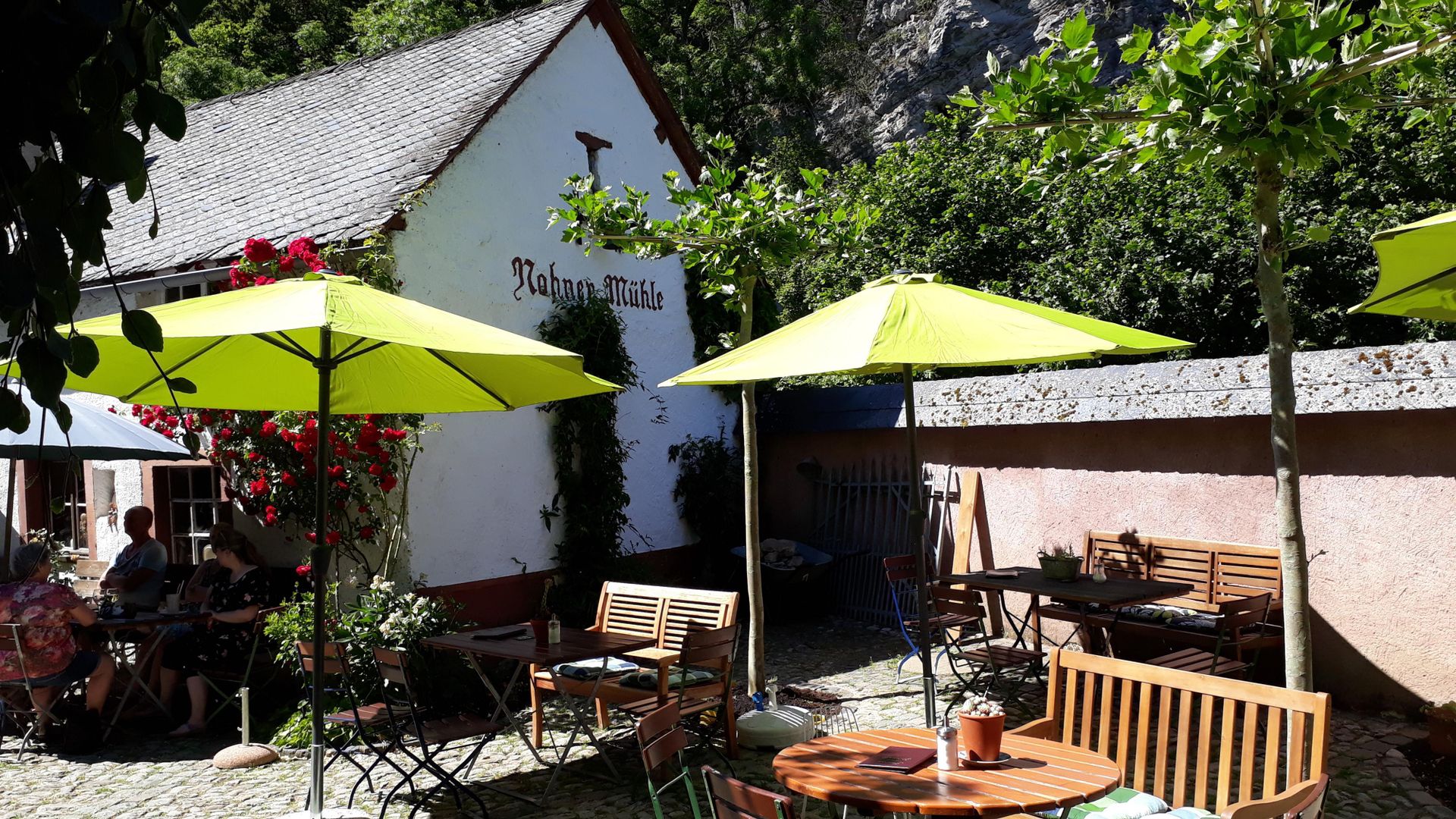 Das ehemalige Stallgebäude der Mühle ist liebevoll in ein Cafe umgebaut worden. Der natursteingepflasterte Innenhof bietet romantische Aussensitzplätze. An den kühleren Tagen verbreitet ein Kaminofen im Cafe wohlige Wärme. Das Cafe Nohner Mühle ist bekannt für seinen hausgebackenen Kuchen und die köstlichen frischen Waffeln. Nur wenige Meter vom Kalkeifel-Radweg entfernt ist das Cafe eine ersehnte Jausenstation bei herzhafter Brotzeit und kühlen Getränken. Bis zum Wasserfall Dreimühlen sind es nur wenige Minuten. Parkplatz an der Strasse Nohn – Stroheich.