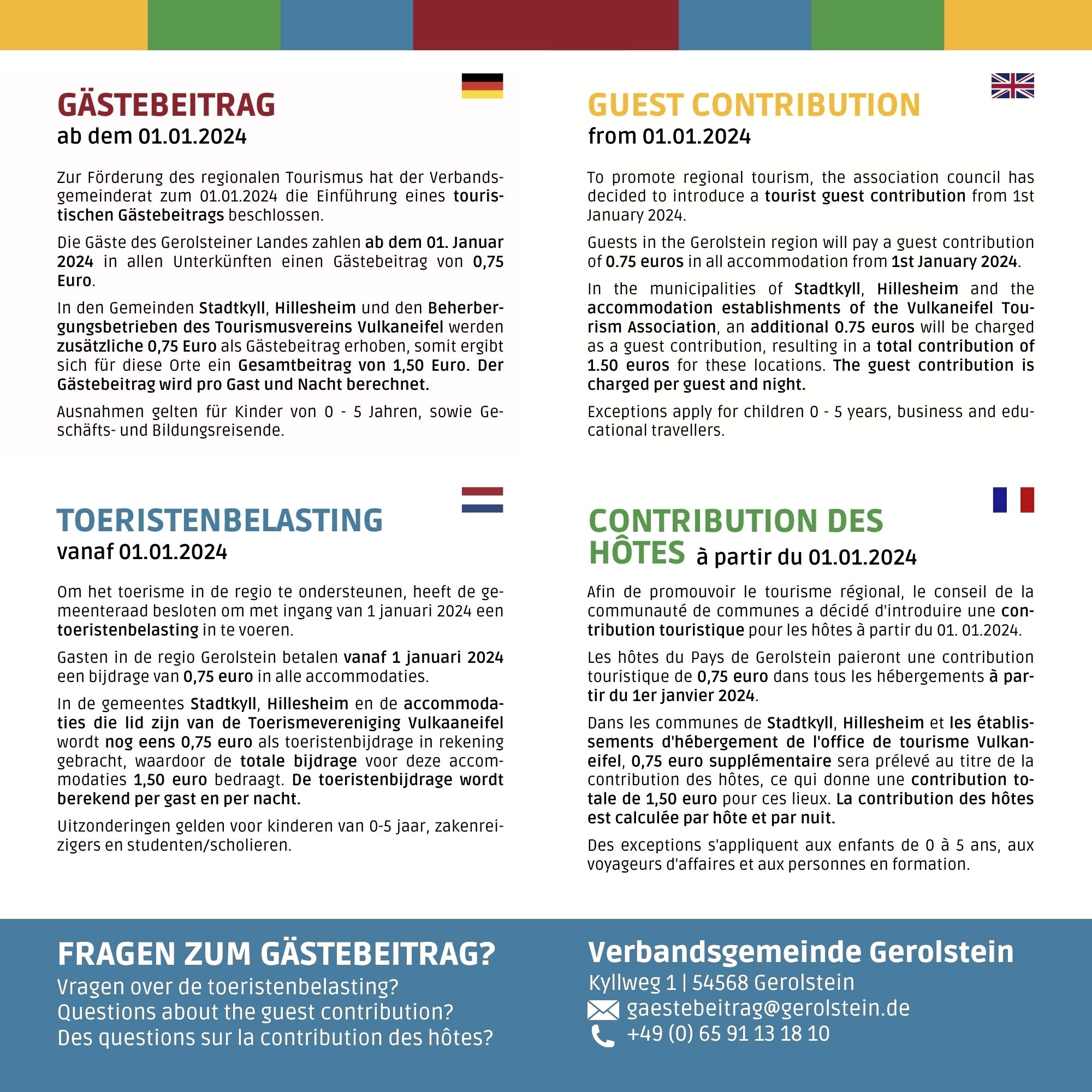 Hier finden Sie die wichtigsten Informationen über die Einführung des touristischen Gästebeitrags ab dem 01.01.2024 im Überblick.
