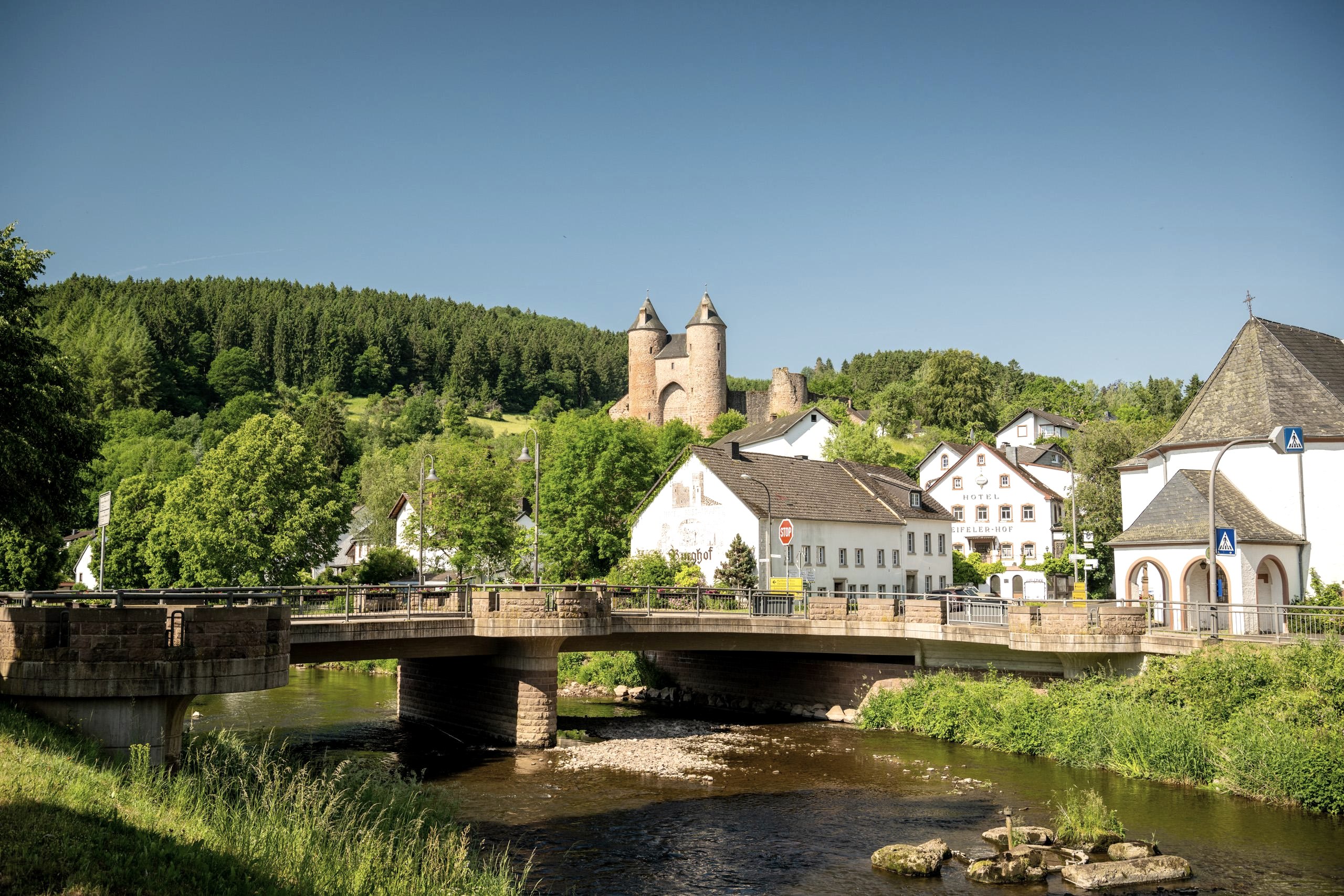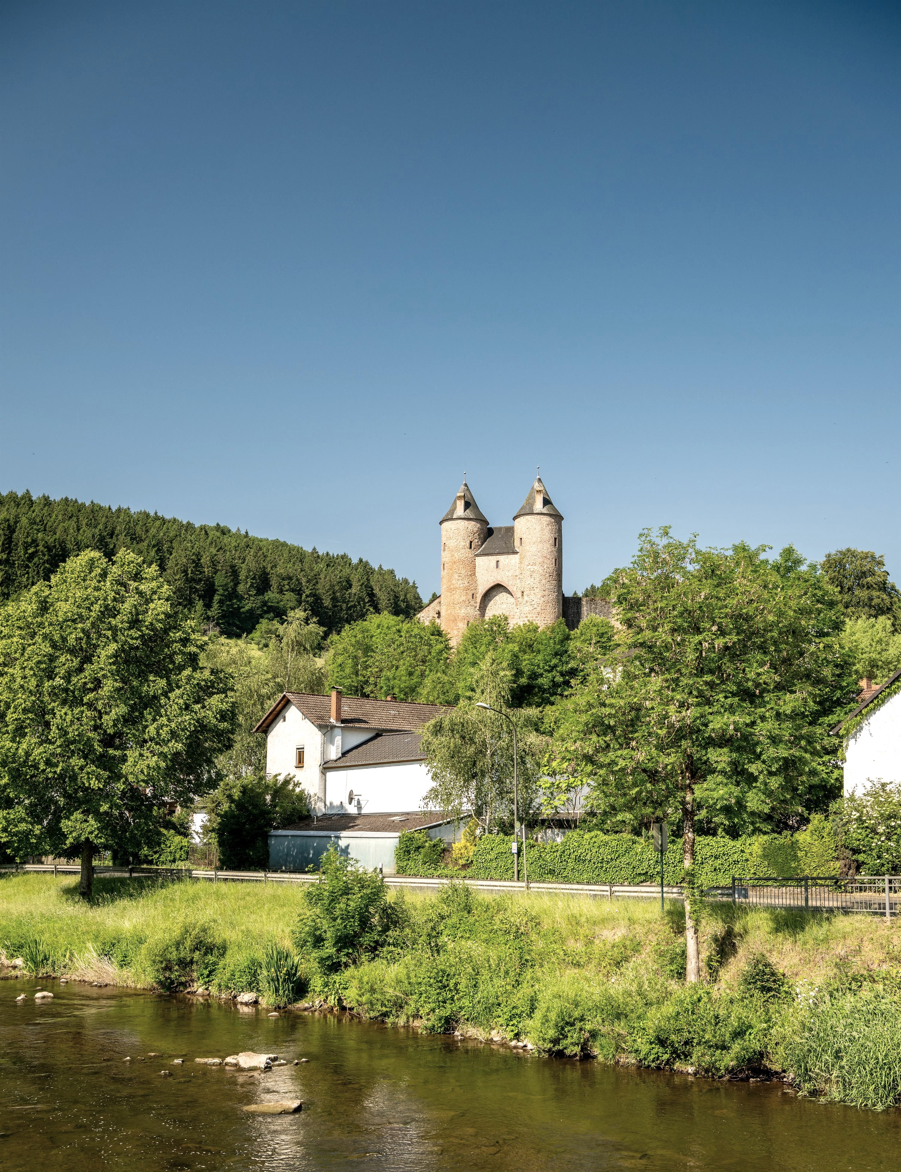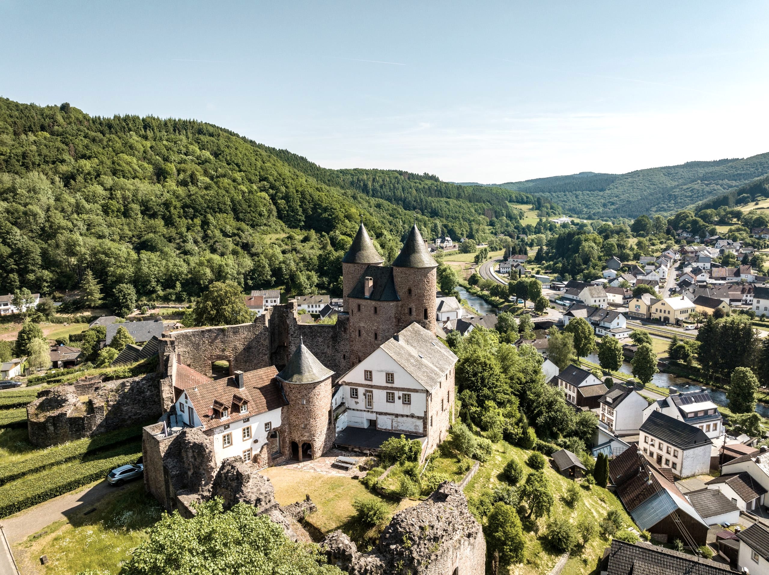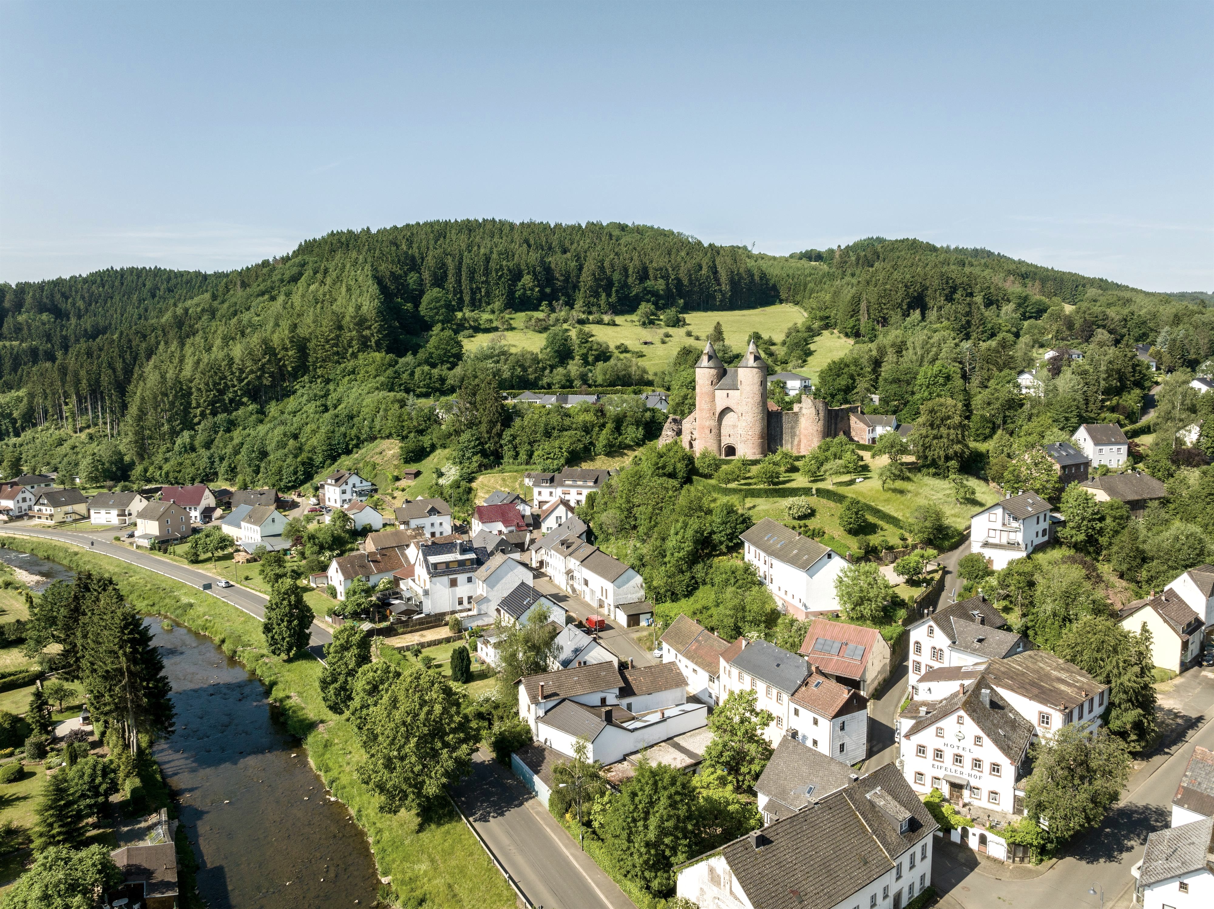 Het imposante decor van het kasteel torent hoog boven het Eifeldorp Mürlenbach uit. De overgrootmoeder van Karel de Grote wordt beschouwd als de stichtster van het kasteel, en hijzelf zou er geboren zijn. Tegenwoordig is het kasteel bewoond en kan daarom alleen op bepaalde tijden en in bepaalde delen worden bezocht.