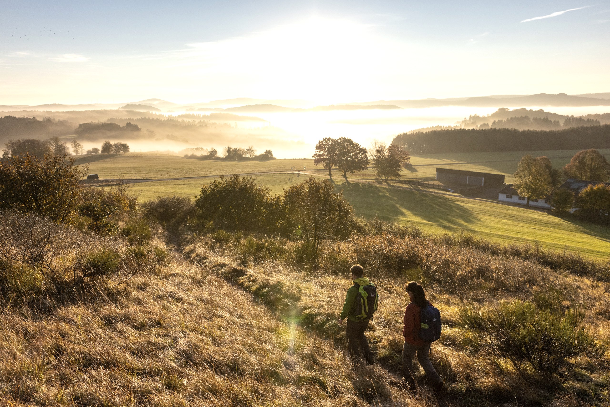 Bij de start van je wandeling in de misdaadhoofdstad Hillesheim voel je je meteen een beetje verheven, want je staat op de historische stadsmuur van Hillesheim. Hiervandaan heb je een prachtig uitzicht over de stad en het Eifel-landschap. Even later word je begroet door het idyllische Bolsdorfer Tälchen met zijn meertje, kalksteenrotsen en de Hillesheimer Bach die zich door de weiden kronkelt. Door het open landschap wandel je nu verder totdat je de rivier de Kyll oversteekt en vervolgens stap voor stap omhooggaat. Bij een trapleuning in het open bos blijft je blik hangen - waar leidt deze trap naartoe? Je bent nieuwsgierig en klimt de trap af. Een koude luchtstroom stroomt je tegemoet en om je heen wordt het donkerder. Je bevindt je in een van de molensteengrotten bij Roth. Ze ontstonden door de winning van molenstenen midden in de vulkaan Rother Kopf. In het bos buiten de grot kun je zelfs nog een molensteen die niet af is ontdekken. Op de top aangekomen strekt zich onder je een uitzicht uit over de binnenkant van de vulkaan: je kijkt in een lavasteengroeve. Vanaf de Rother Kopf heb je ook een ver uitzicht over de heuvelachtige Eifel, perfect voor een pauze voordat je licht bergafwaarts verder gaat naar het stuwmeer Gerolstein. Je weerstaat de verleiding om hier al af te slaan naar Gerolstein, het doel van de etappe. Nu wordt het echt spannend: na het vulkanische landschap liggen nu de indrukwekkende rotsen van de Gerolsteiner Dolomieten voor je. Ooit (ca. 390 miljoen jaar geleden in het Onder-Devoon) was hier een warme zee! Had je dat gedacht? De Dolomieten zijn een voormalig koraalrif. Laat je fantasie de vrije loop en je zult het zien.
