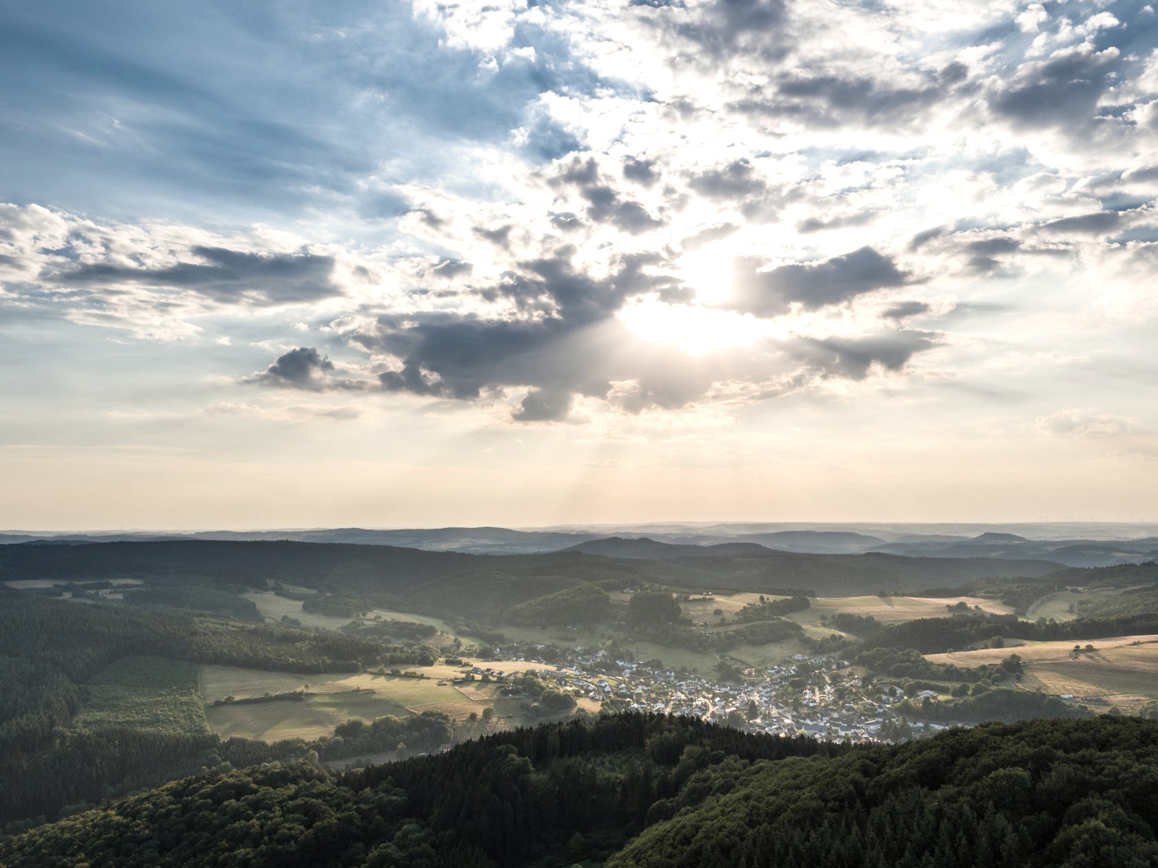 Dus doe je de eerste pittige beklimming naar burchtruïne Löwenburg met gemak. Hiervandaan heb je een ver uitzicht over de stad Gerolstein. Door een geheimzinnig bos wandel je verder. Wat zit daar tussen de bomen verstopt? Het is een kleine boskapel, die idyllisch midden in de natuur is gebouwd. Het bosrijke pad wijst je verder de weg bergopwaarts naar de bergtop Dietzenley op een hoogte van 618 meter. De houten uitzichttoren biedt een blik op de krachtige en bosrijke Vulkaaneifel. Je kunt zien dat je op een vulkaan staat: de 'Klippe' onder je bestaat uit donker basalt, een vulkanisch gesteente. Hierboven voel je je vrij en een fris windje wappert door je haren. Na deze welverdiende pauze wandel je licht op en af om Neroth heen. Je brengt een kort bezoek aan het kleine Eifel-dorp. Daar staat je iets wonderlijks te wachten: een muizenvallenmuseum! De grootste muizenval ter wereld bevindt zich midden in de plaats - je kan hem niet missen. Je wandeling leidt je nu het dal in van de Kleine Kyll en meteen weer bergopwaarts naar de volgende heuvel. Op de 652 meter hoge Nerother Kopf voel je je als in een sprookjesbos: knoestige grote boomwortels bepalen het beeld. Vooral sfeervol is het hier in de late herfst, als de gekleurde bladeren op de bodem vallen. Door ongerept vulkanisch landschap wandel je het doel van de dag tegemoet: Daun