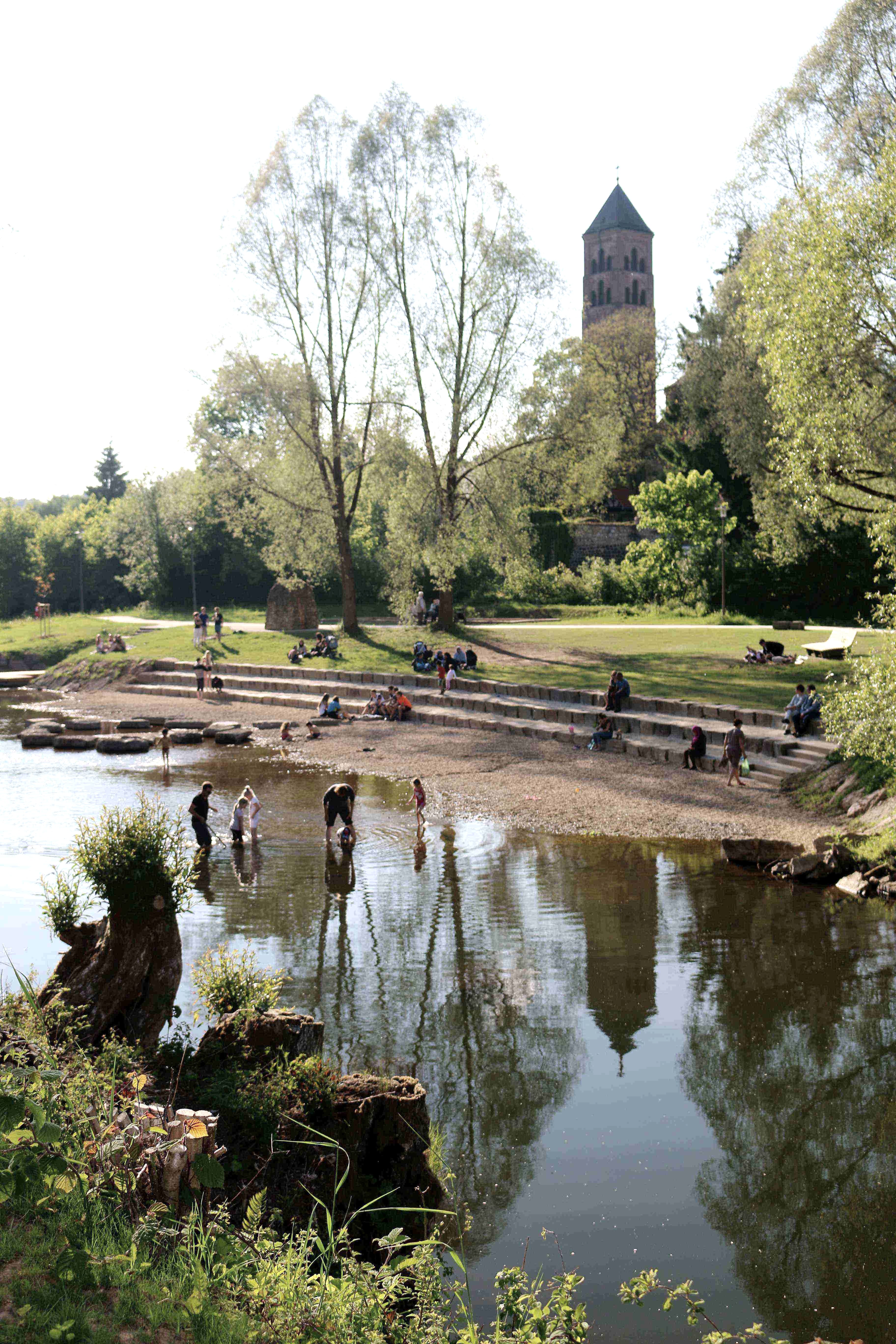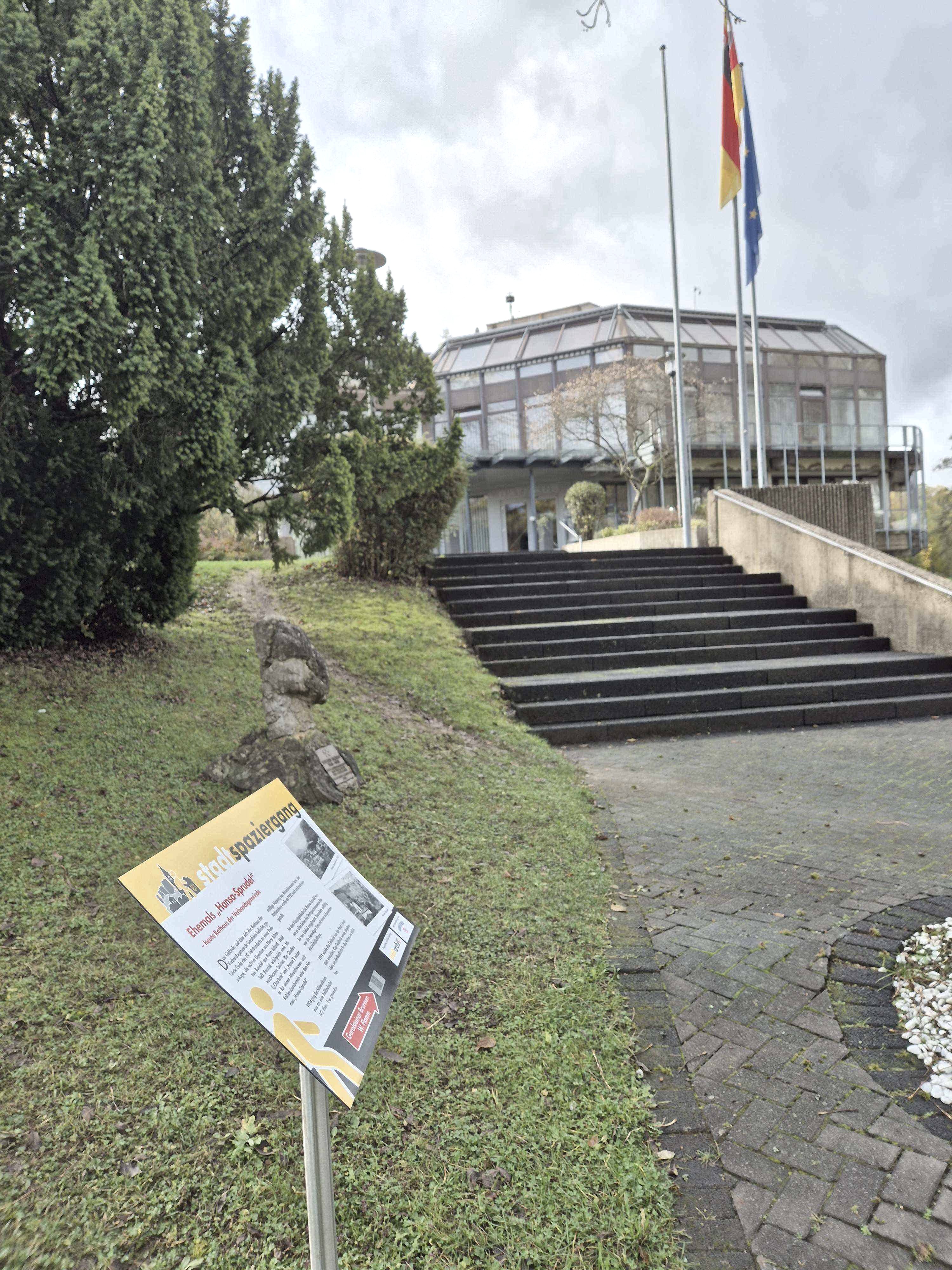 De stadswandeling begint tegenover het Kyllpark bij de toegangstrappen naar het stadhuis, d.w.z. voor het stadhuis aan de Kyllweg.