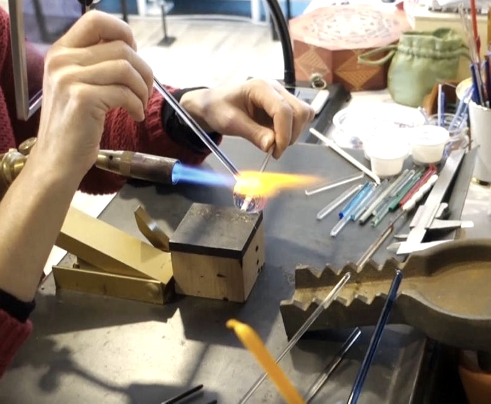 In haar atelier kan u getoond en uitgelegd worden hoe de unieke kralen gemaakt worden.