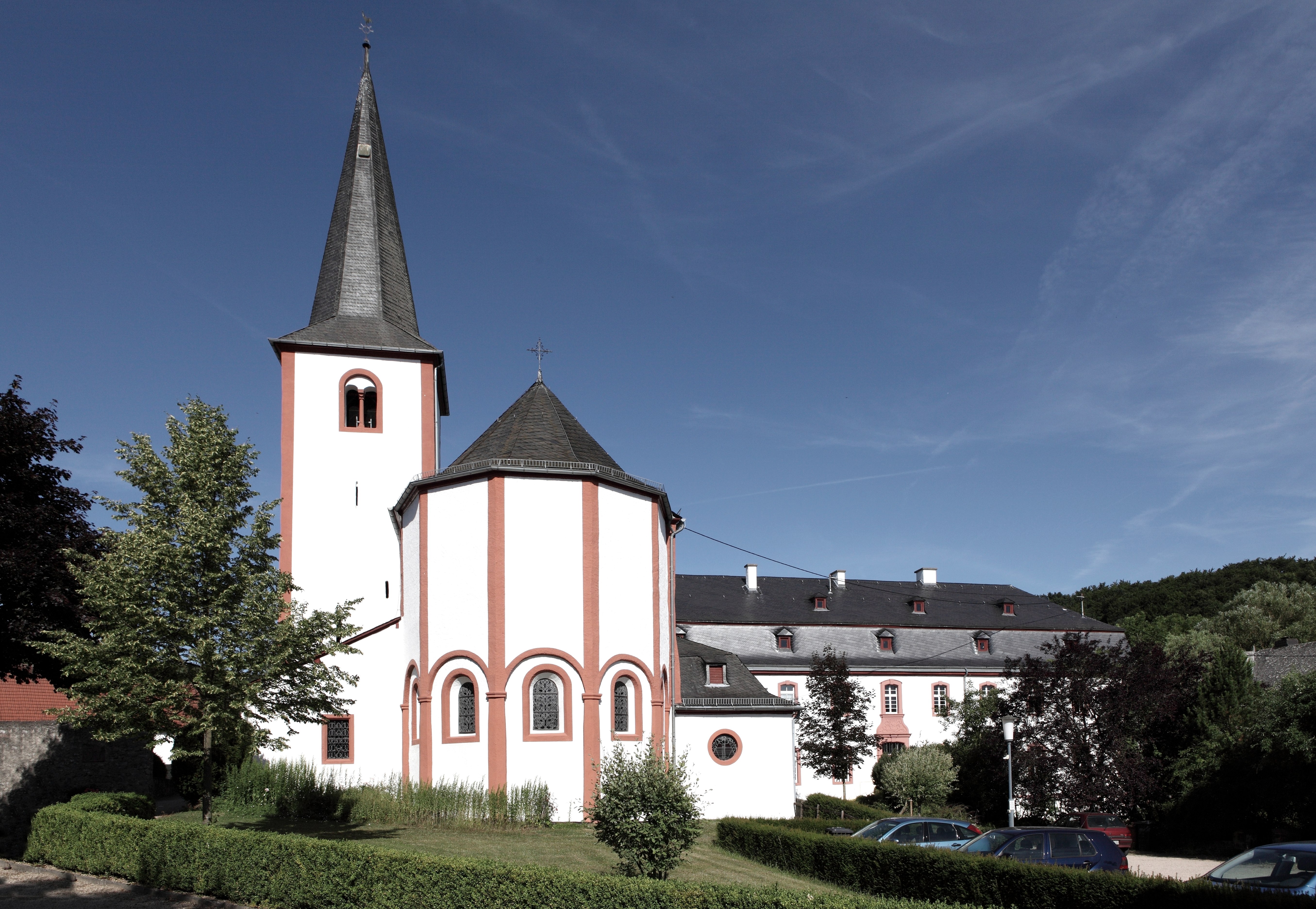 We volgen de markeringen verder door het bos, steken het Kalkeifel-fietspad en het Mineralquellen-fietspad over en bereiken Niederehe. Het klooster met kerk uit de 12e eeuw is het bekijken waard. Tegenover het klooser ligt het Landgasthof Schröder, waar u een korte pauze kunt houden.