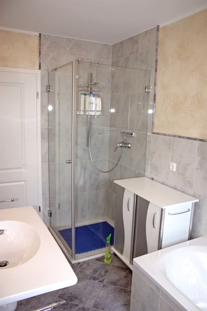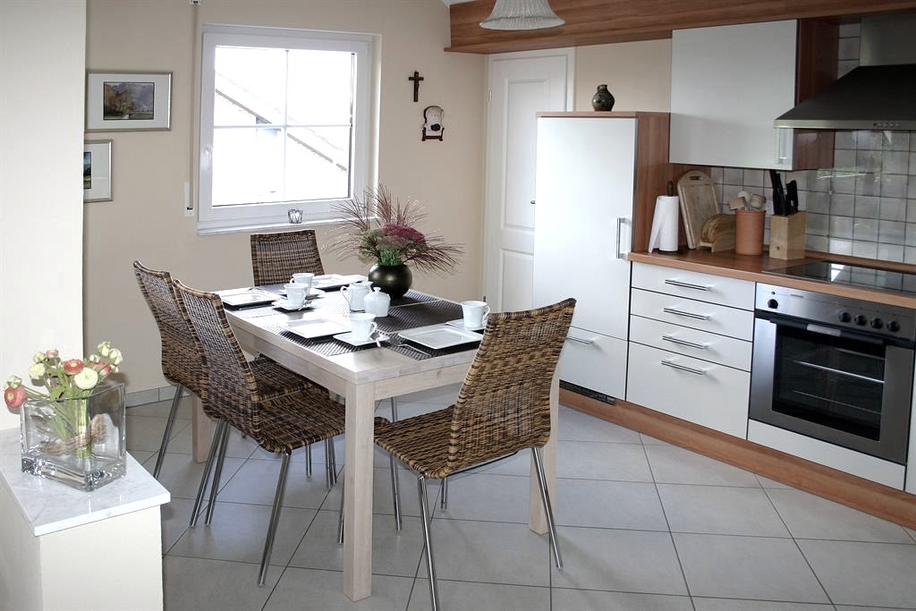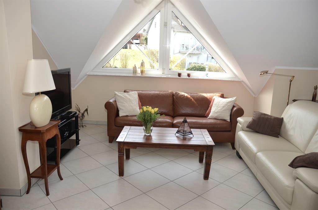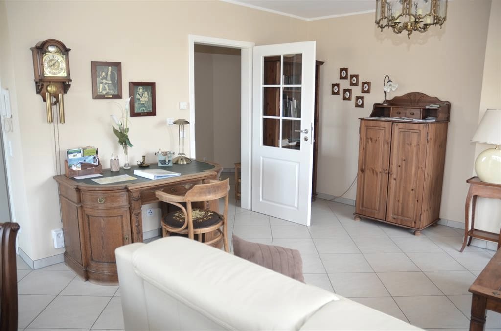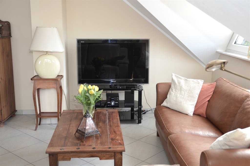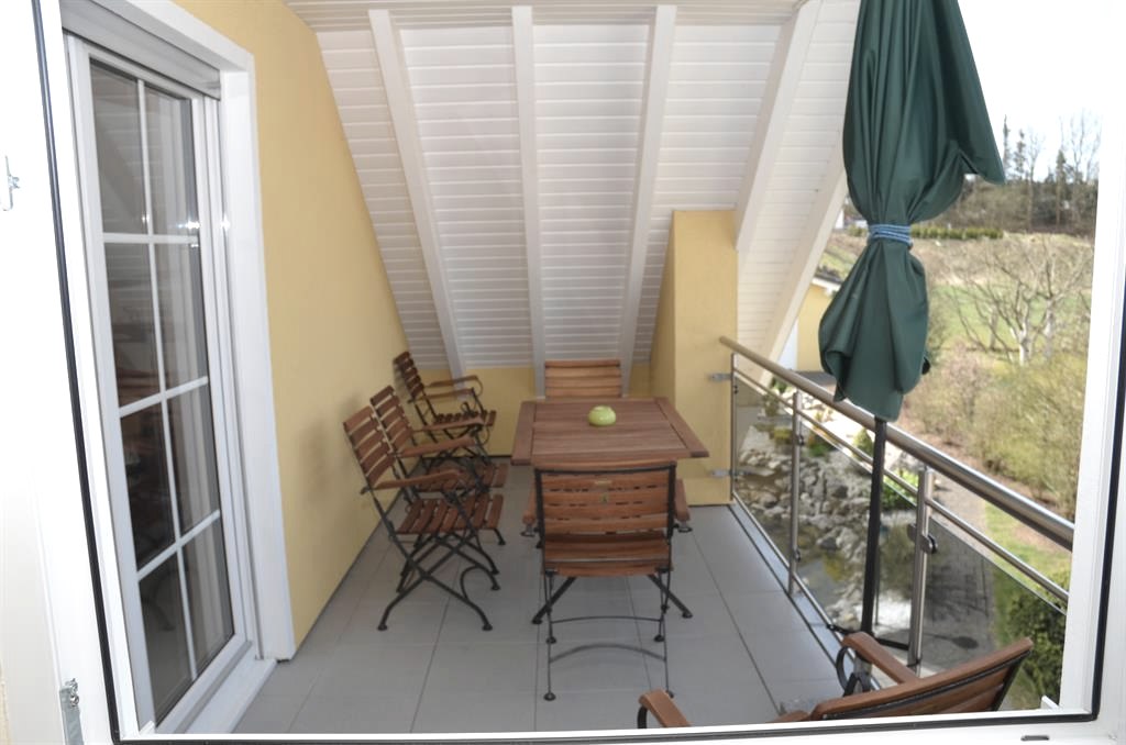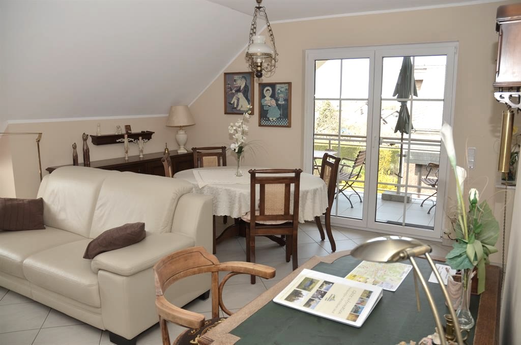 De vakantiewoning ligt dicht bij het centrum in een verkeersluwe zone. Op 5 minuten lopen van het bos (Eifelsteig-wandelpad). Op 10 minuten lopen van het centrum, met binnen- en buitenbad, tennisbanen, manege, fiets- en e-bike-verhuur enz. Op 90 m² staat u een comfortabele oase van rust te wachten, waar maximaal 4 personen de dagelijkse sleur van zich af kunnen laten glijden. Na een lange, actieve dag kunt u bijv. in de grote woonkamer heerlijk ontspannen bij een goede film. Koken is echt leuk in onze compleet ingerichte inbouwkeuken. Van keramisch kookveld tot oven, magnetron, koelkast, vaatwasser, vrieskast, koffiezetapparaat, broodrooster, eierkoker, potten en pannen is alles aanwezig. Van de middag- en avondzon kunt u genieten op het met teakmeubels uitgeruste overdekte balkon.