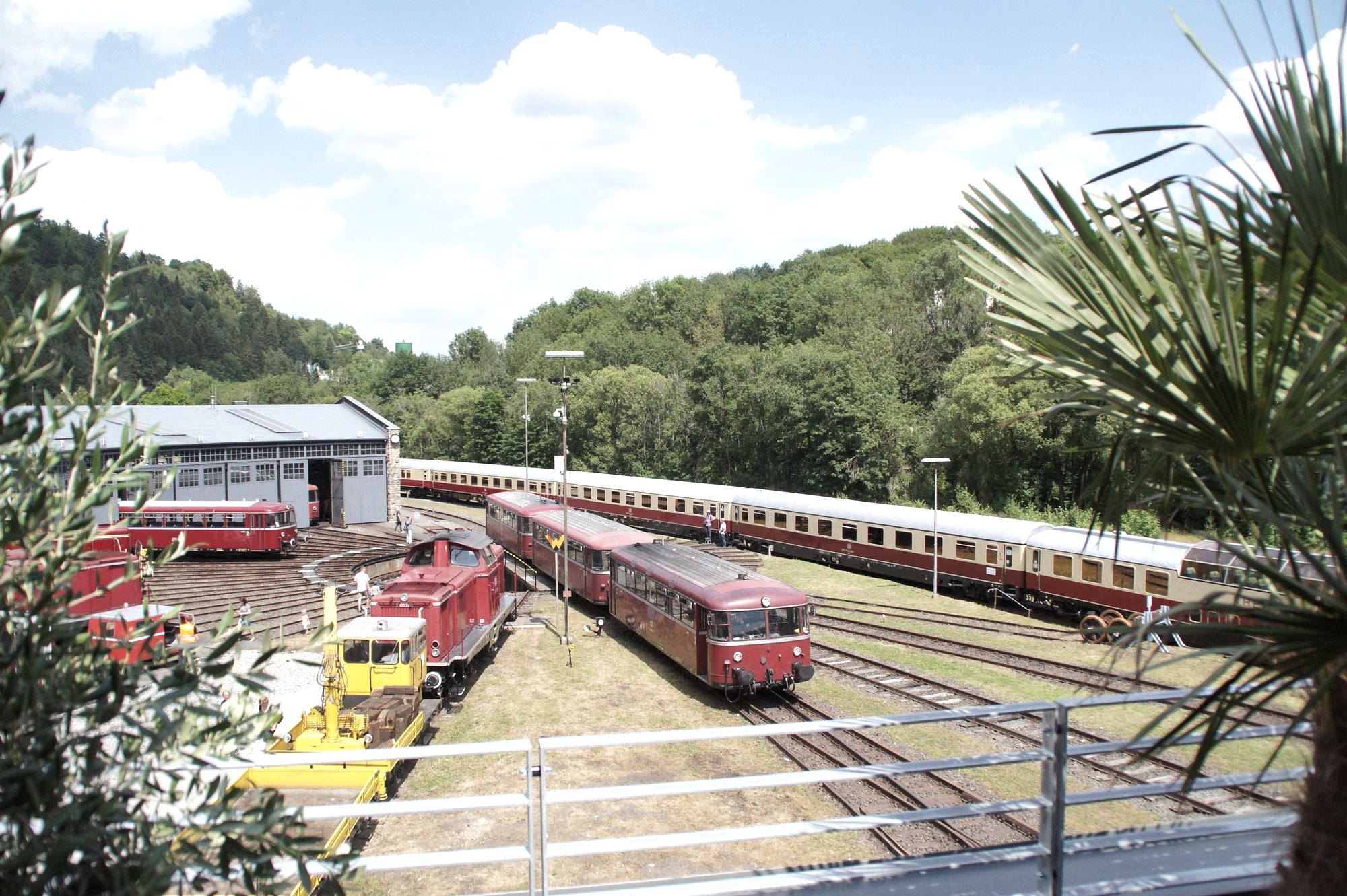 Het spoorwegbedrijf in Gerolstein - tevens het hoofdkantoor van AKE-Eisenbahntouristik en de Vulkan-Eifel-Bahn - opent dit weekend zijn deuren voor bezoekers. Ter plaatse kunt u een afwisselend entertainmentprogramma verwachten met live muziek, culinaire aanbiedingen en spannende inzichten in het historische bedrijfsterrein. Onder andere ziet u de historische draaischijf, de twee waterkranen en de historische en ook de nieuw gebouwde gebouwen op het terrein. Als bijzondere hoogtepunten is dit weekend de Adler - een reconstructie van de oudste stoomlocomotief van Duitsland - op bezoek in Gerolstein en zal pendeldiensten vanaf het spoorwegbedrijf uitvoeren. U kunt zich verheugen op informatieve en gezellige uren op het terrein van het spoorwegbedrijf in Gerolstein.