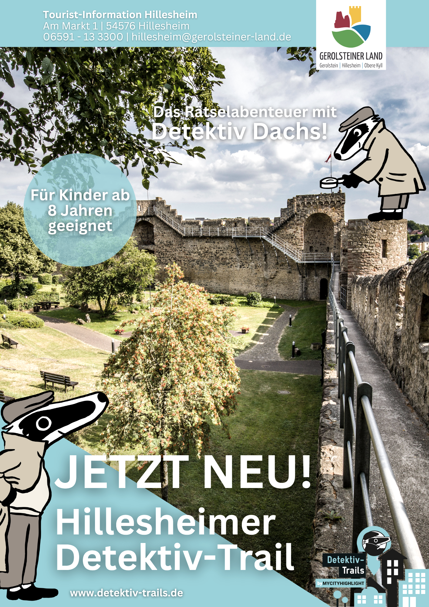 De schattenjacht begint centraal bij de toeristeninformatie van Hillesheim, waar de deelnemers de eerste puzzel oplossen. Vervolgens moeten ze de beschreven sporen en routebeschrijvingen volgen. De detectives komen steeds weer langs puzzelposten, waar nog meer puzzels op hen wachten, die met behulp van verschillende aanwijzingen op die plek kunnen worden opgelost. Je kunt op elk moment en zonder voorafgaande aanmelding beginnen, dus de detective-trail is ook geschikt voor spontane speurneuzen.