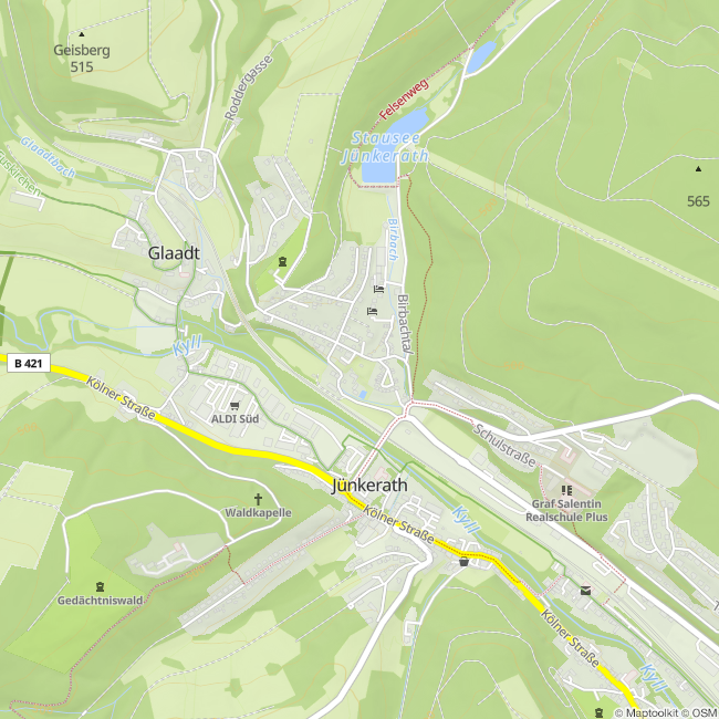 Im Mittelalter besaß Glaadt noch größere Bedeutung als Jünkerath, dass damals nur eine Hüttenansiedlung war. Deshalb wurde im 14. Jh. eine Burg an dieser Stelle durch den Grafen Dieterich von Schleiden erbaut.