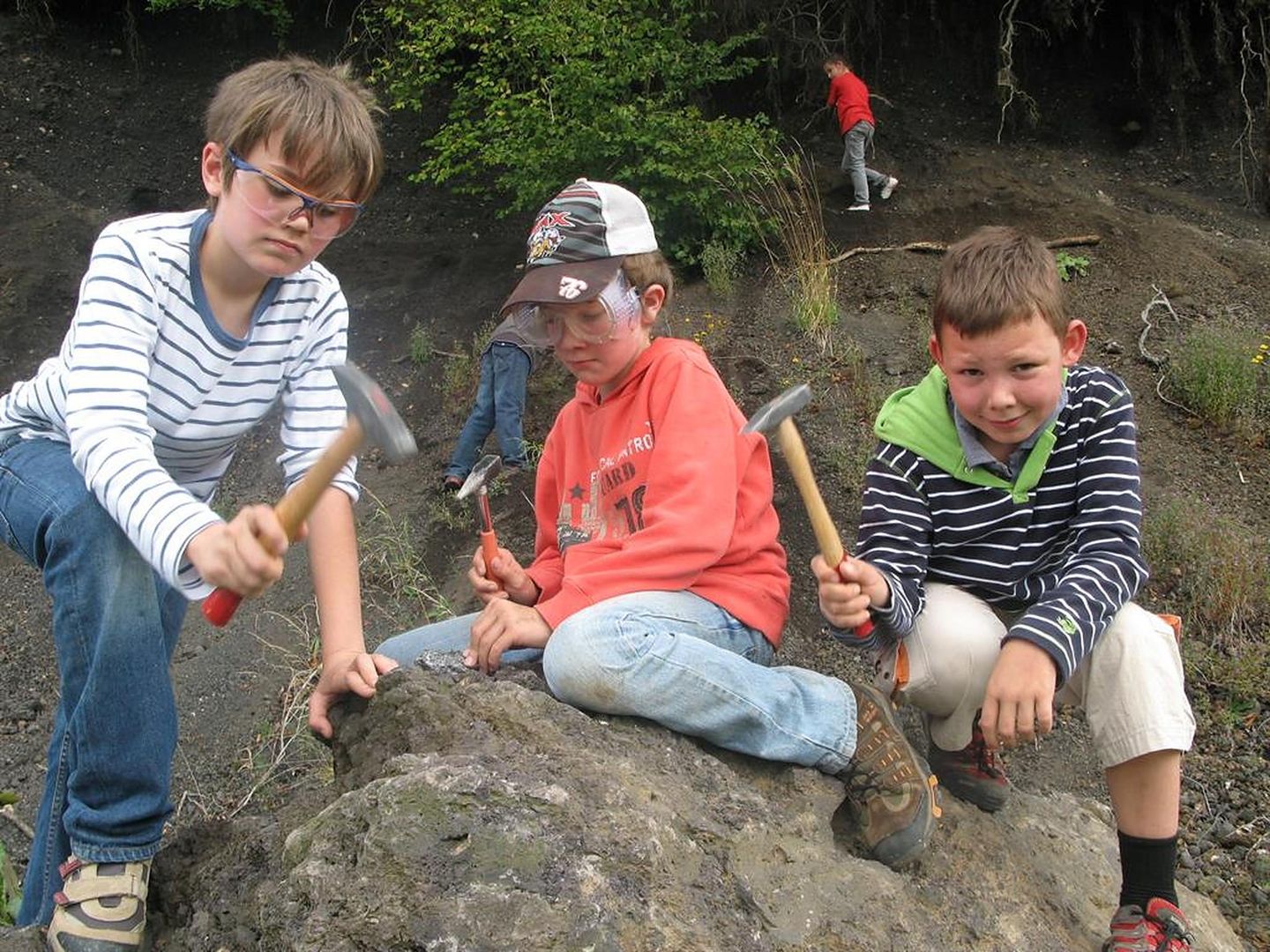 In den Ferien von Rheinland-Pfalz und NRW werden spezielle Gesteinsdetektivkurse angeboten: Treffpunkt ist das Naturkundemuseum in Gerolstein. Dort zeigt und erklärt ein ausgebildeter Geopark-Begleiter den kleinen Nachwuchsgeologen die drei Hauptgesteinsarten Basalt, Dolomit und Kalkstein und erläutert welche Mineralien darin zu finden sind. Dann brechen die Gesteinsdetektive - einen kleinen Rucksack mit Wasser und Proviant, Feldbuch und Bleistift, Hämmerchen und Schutzbrille sollten sie dabei haben - mit ihrem „Chefgeologen“ zur Expedition in die Welt der Steine und Vulkane auf. Über das Flüsschen Kyll und die Gerolsteiner Dolomiten hinweg führt der Weg zum „Geoacker“. Dort tauchen die Kinder in die Welt der Steine ein und finden, untersuchen und bestimmen die Hauptgesteinsarten und Mineralien.