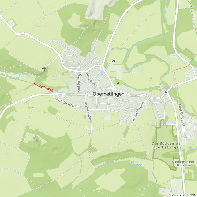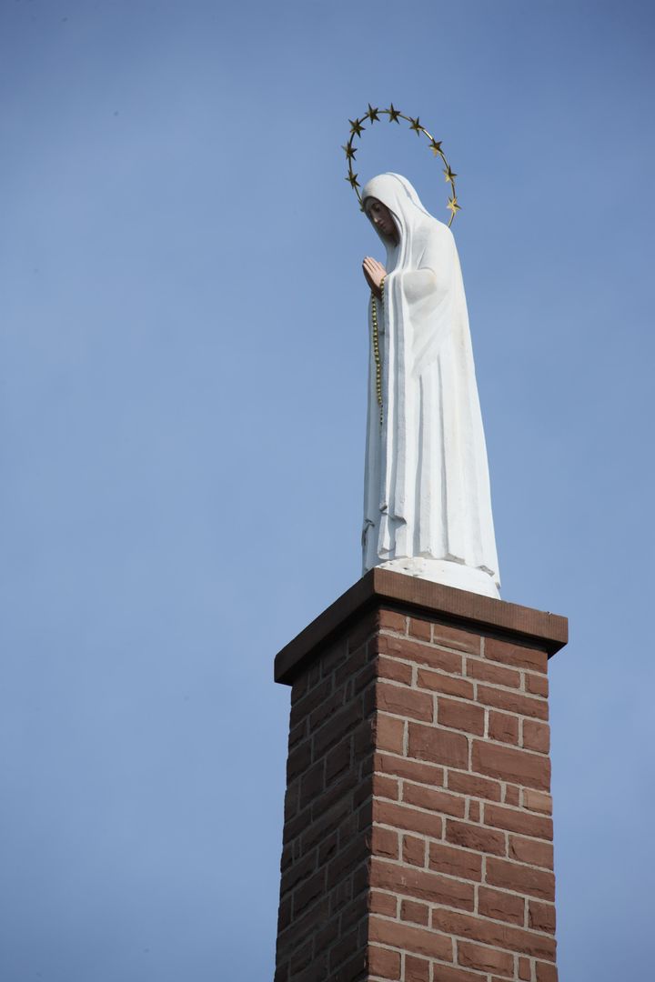 Marienfigur nach dem Vorbild aus Fatima. Die 2 m hohe Statue steht auf einem 6 m hohen Sockel und wurde 1956 errichtet in einem Gemeinschaftsprojekt der Oberbettinger Bürger, Vereine und Steinmetze.