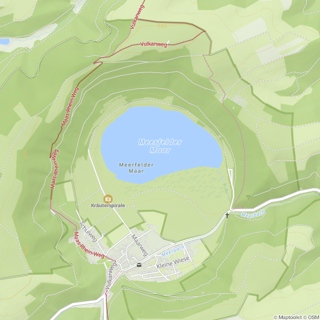 Inmitten des größten Maartrichters der Eifel liegt das zauberhafte Meerfelder Maar. Mindestens 30.000 Jahre ist dieses Maar schon alt und nimmt in etwa die Hälfte des Platzes des Maartrichters ein. An die steilen Südhänge der anderen Hälfte schmiegt sich das idyllische Örtchen Meerfeld, dessen Restaurants mit ihrer hervorragenden Küche Ihren Gaumen verwöhnen.
