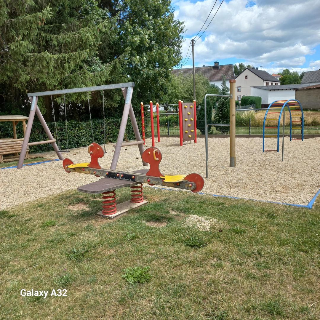 Der Spielplatz mit Schaukel, Rutschbahn, Kletterwand, Seilbahn und Bolzplatz ist ein wahres Paradies für Kinder.